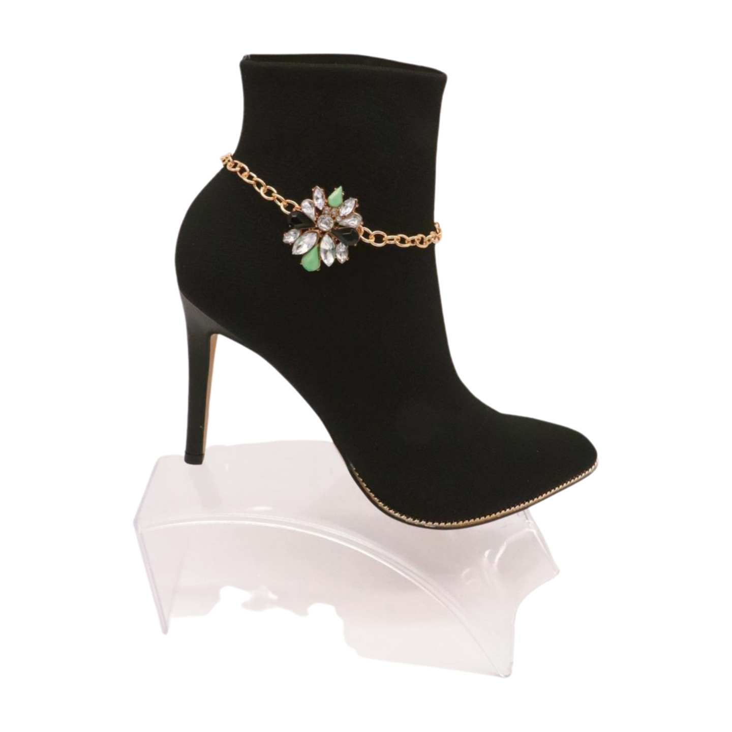 Women Gold Metal Boot Chain Links Bracelet Shoe Bling Star Charm Anklet Jewelry