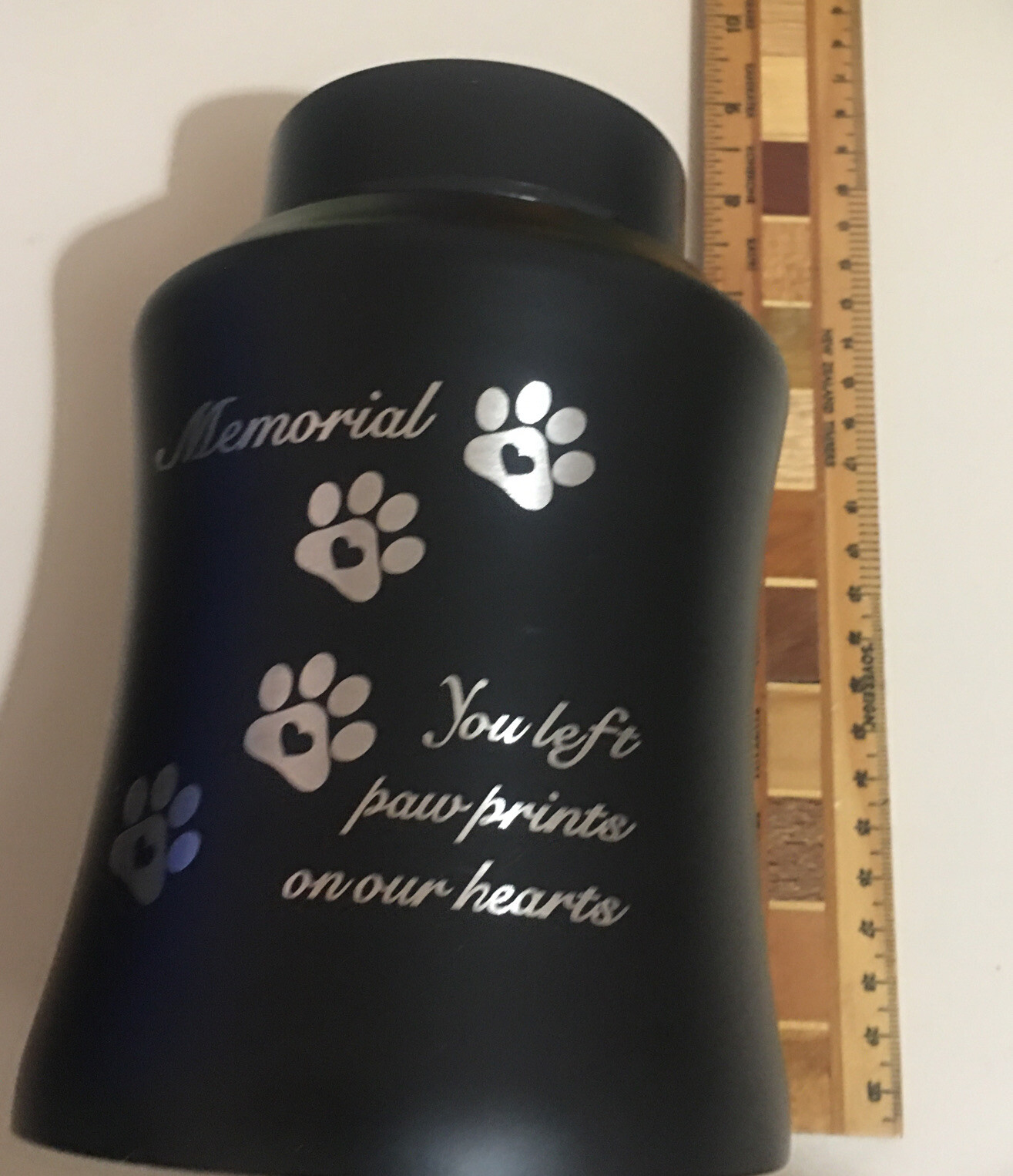 Memorial Pet Urn - 'You Left Pawprints on Our Hearts' - Engraved Sleek Black NEW