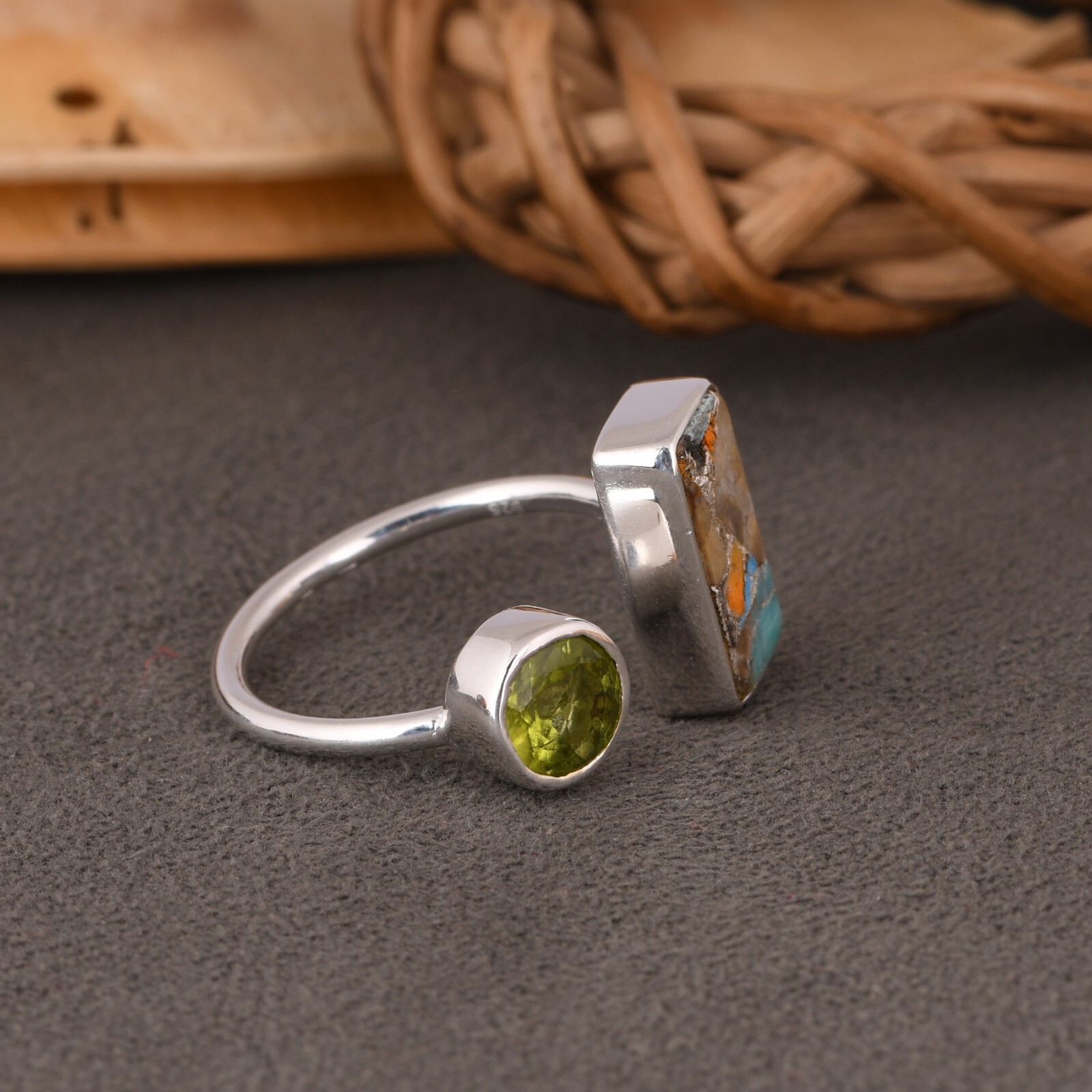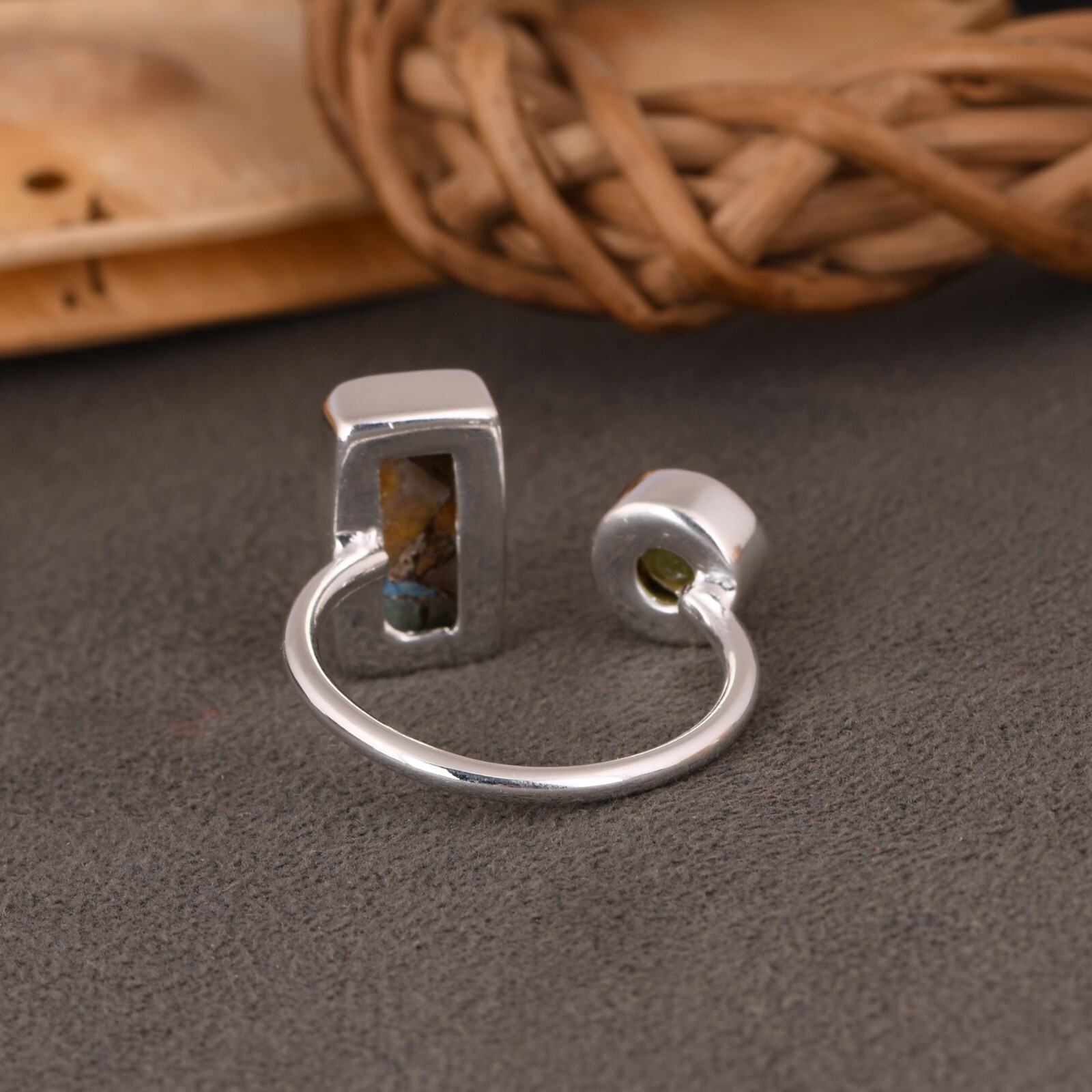 925 Sterling Silver With Copper Turquoise Peridot Ring For Christmas Gift