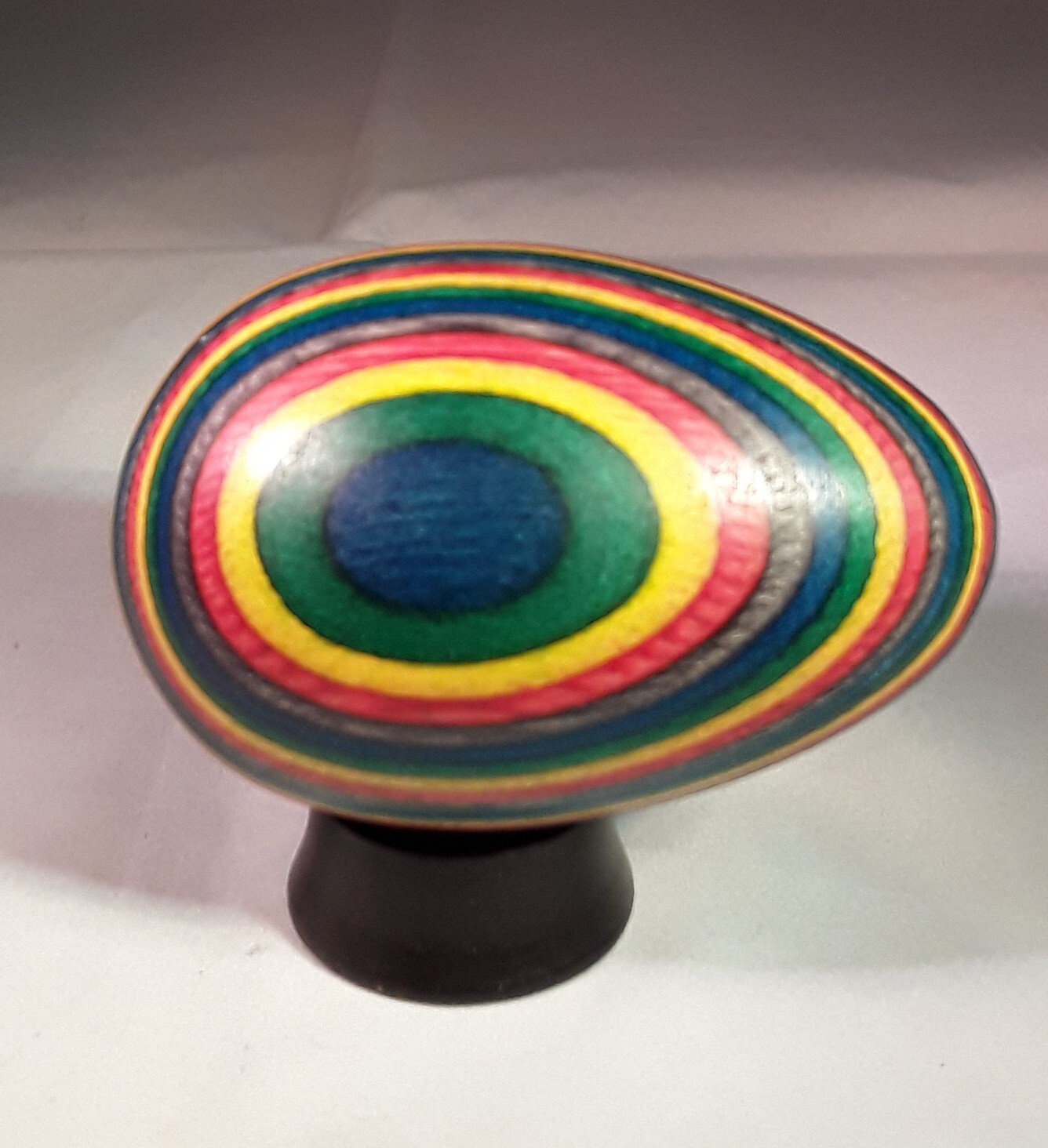 WOOD TURNED EGG GROOVY COLORED OVALS AND STRIPES PAPER WEIGHT OOAK HANDMADE COOL