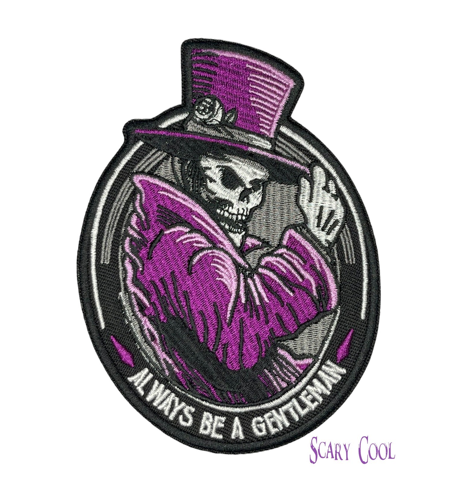 New Grim Reaper Always be a Gentleman Skull Embroidered Biker Iron On Patch