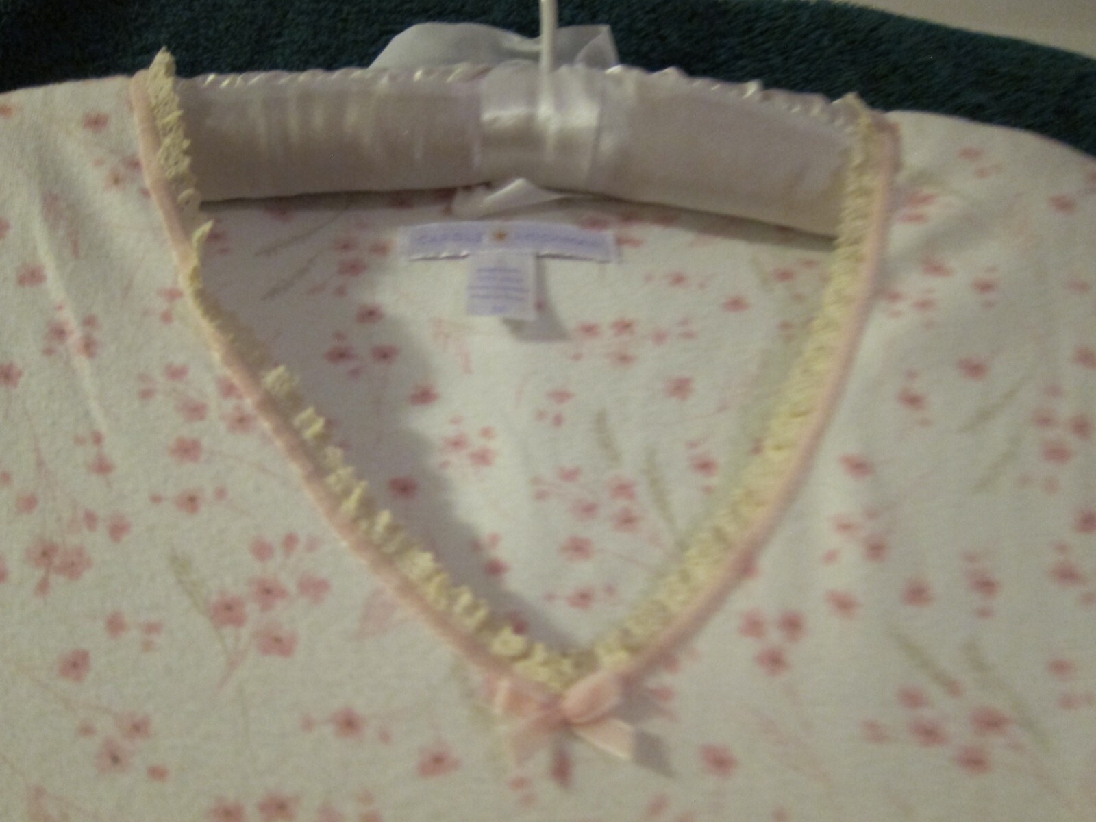 как выглядит CAROLE HOCKMAN LONG SLEEVE COTTON GOWN BEIGE PINK FLOWERS NWT фото