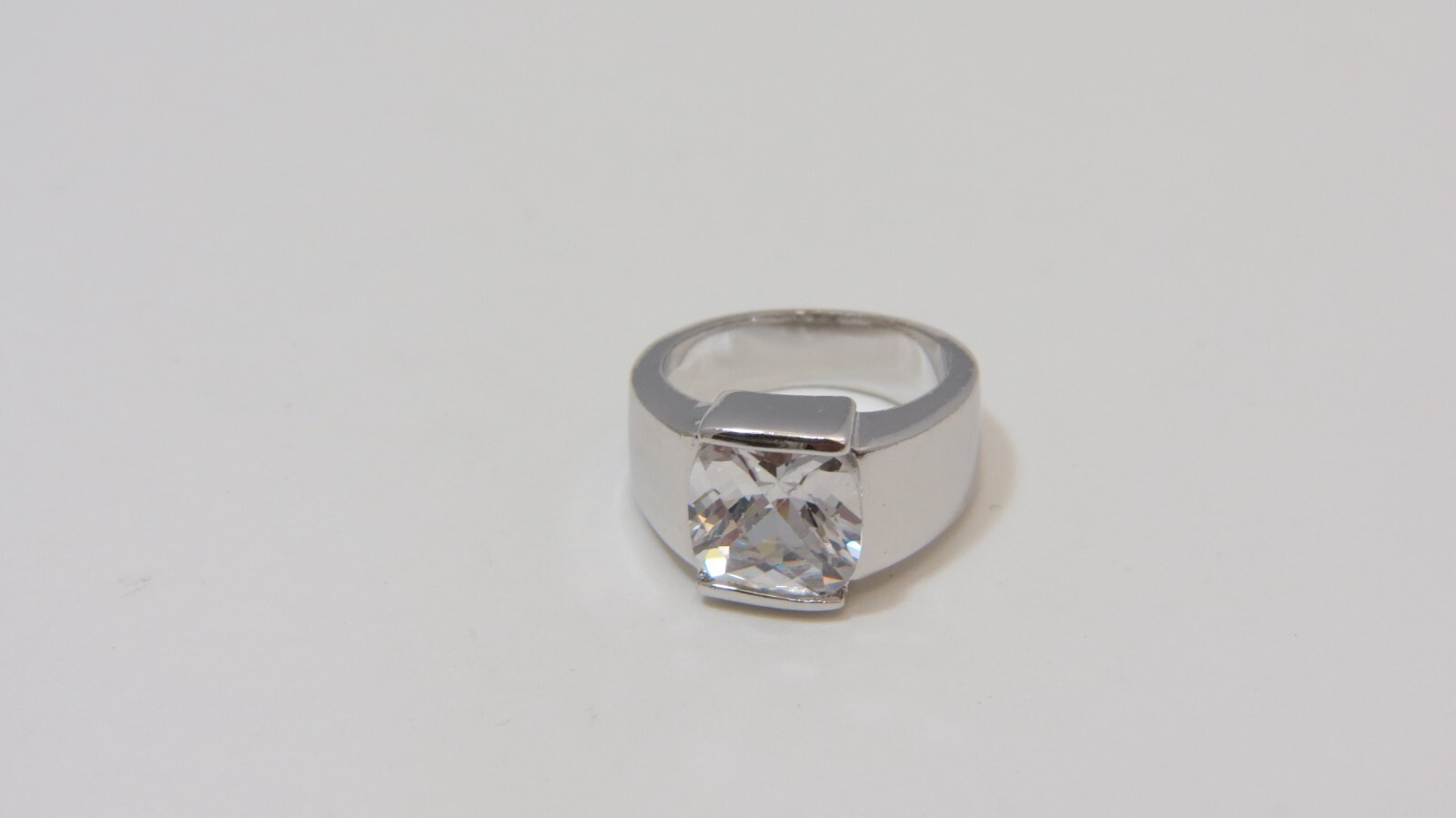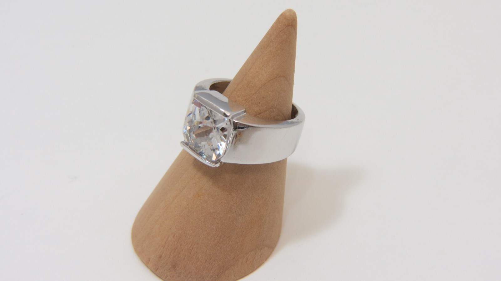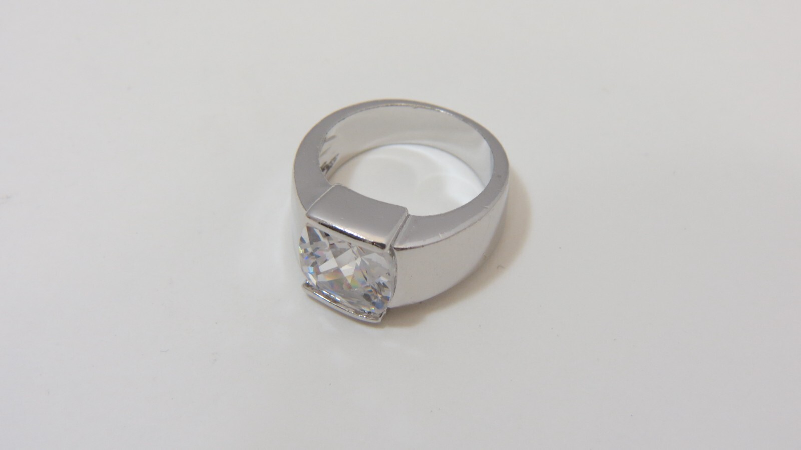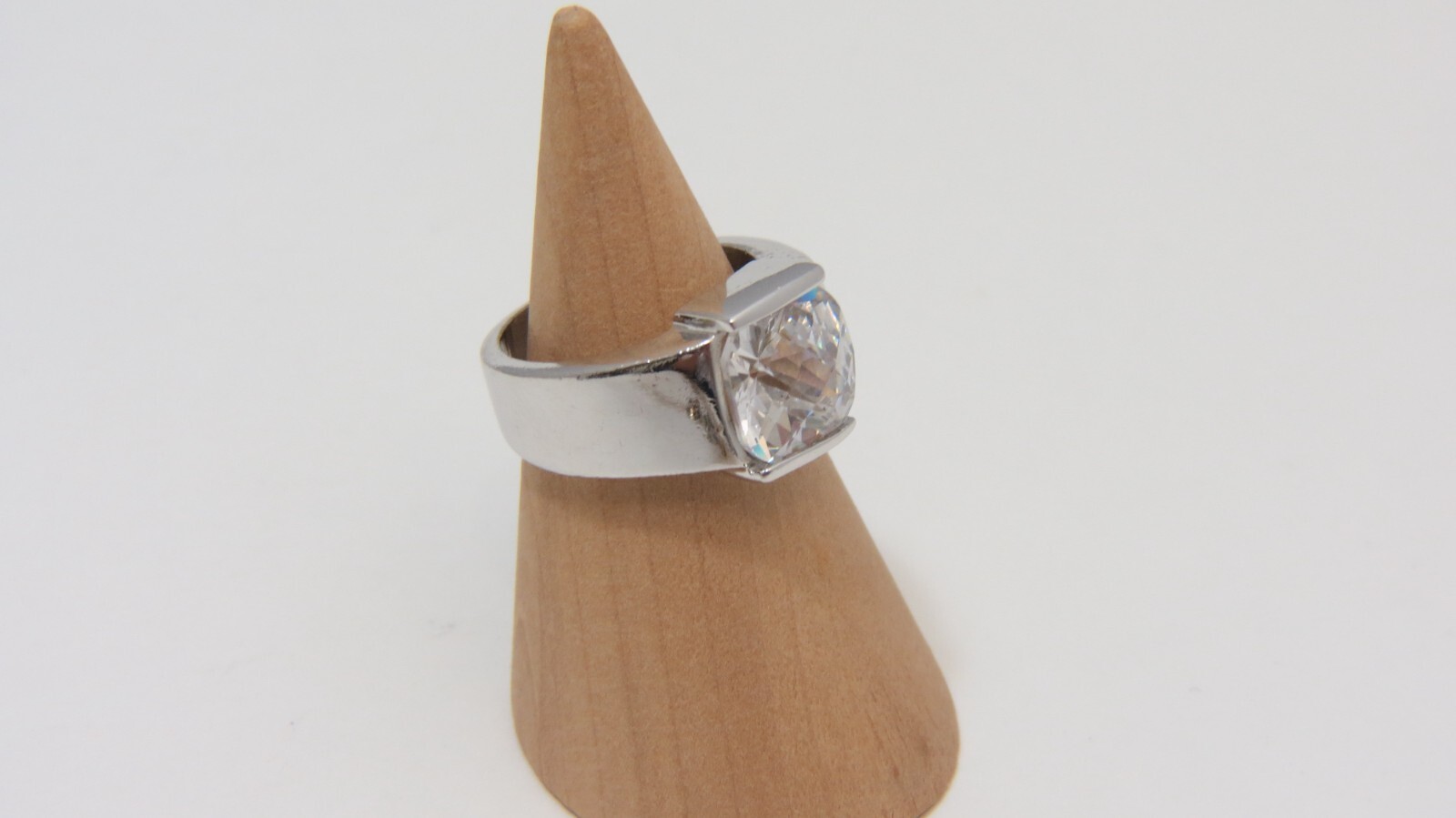 как выглядит Vintage Plated Silver Ring w/ Cubic Zirconia Solitaire - Sz 6 фото