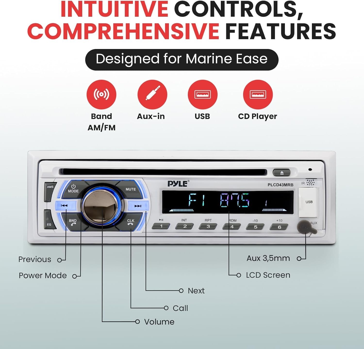 Pyle Hands-Free Call Answering Bluetooth Ready Marine Stereo Receiver Single DIN