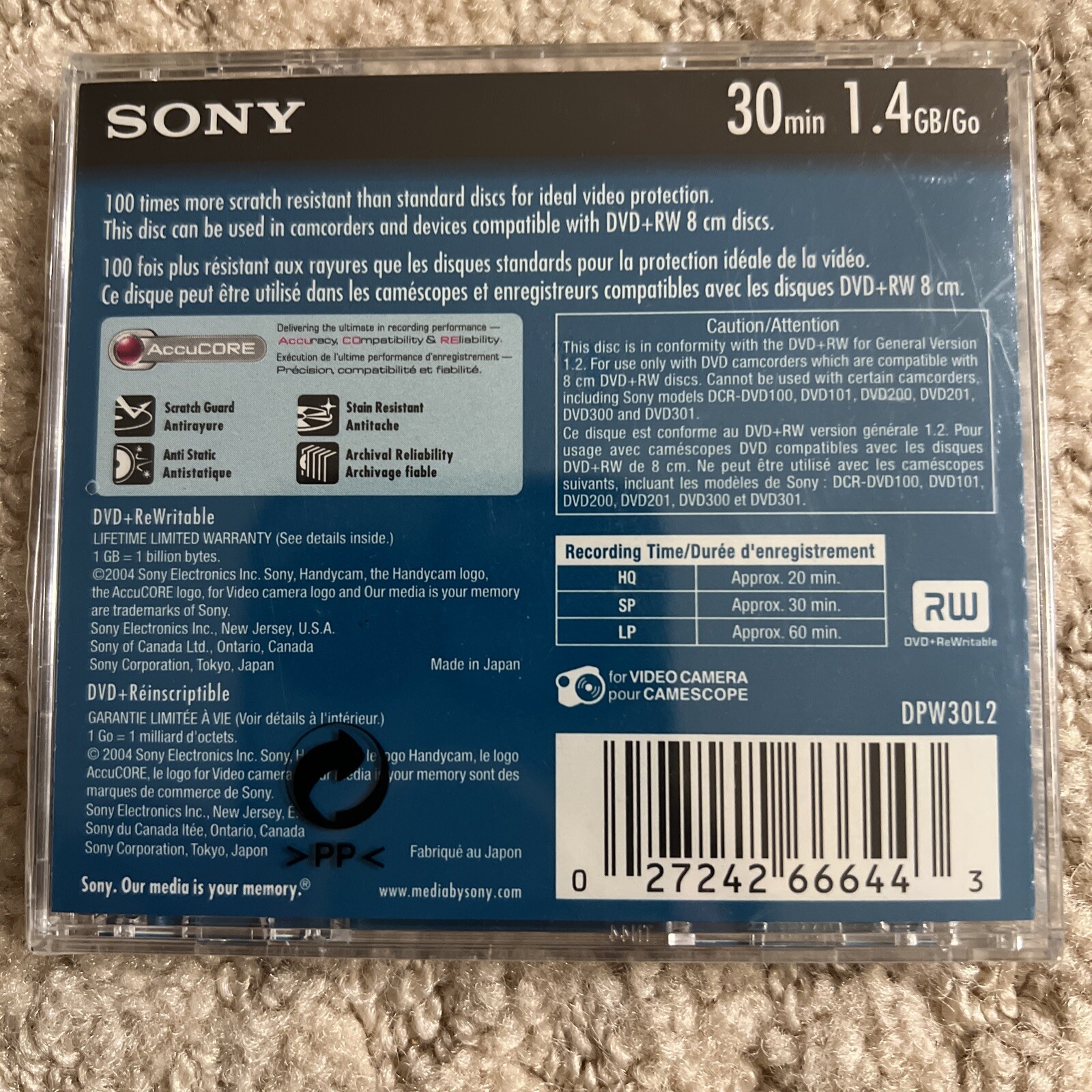 Sony Handycam DVD RW 30 min 1.4 GB Factory Sealed Package