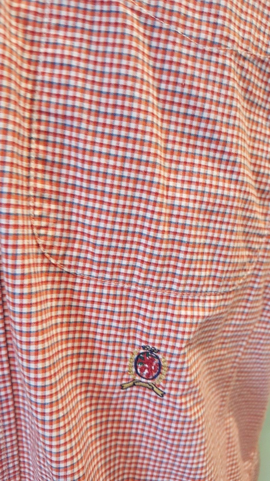 как выглядит Tommy Hilfiger Mens Short Sleeve Button Down Red/Green Plaid Shirt size Medium фото