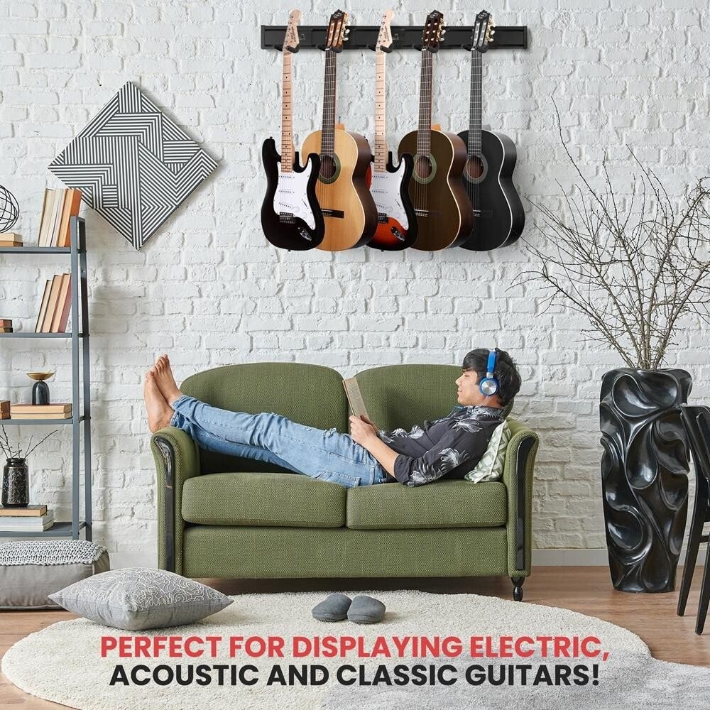 Pyle Guitar Keeper Bundle 5 Adjustable String Swing Guitar Hangers Wall Mount