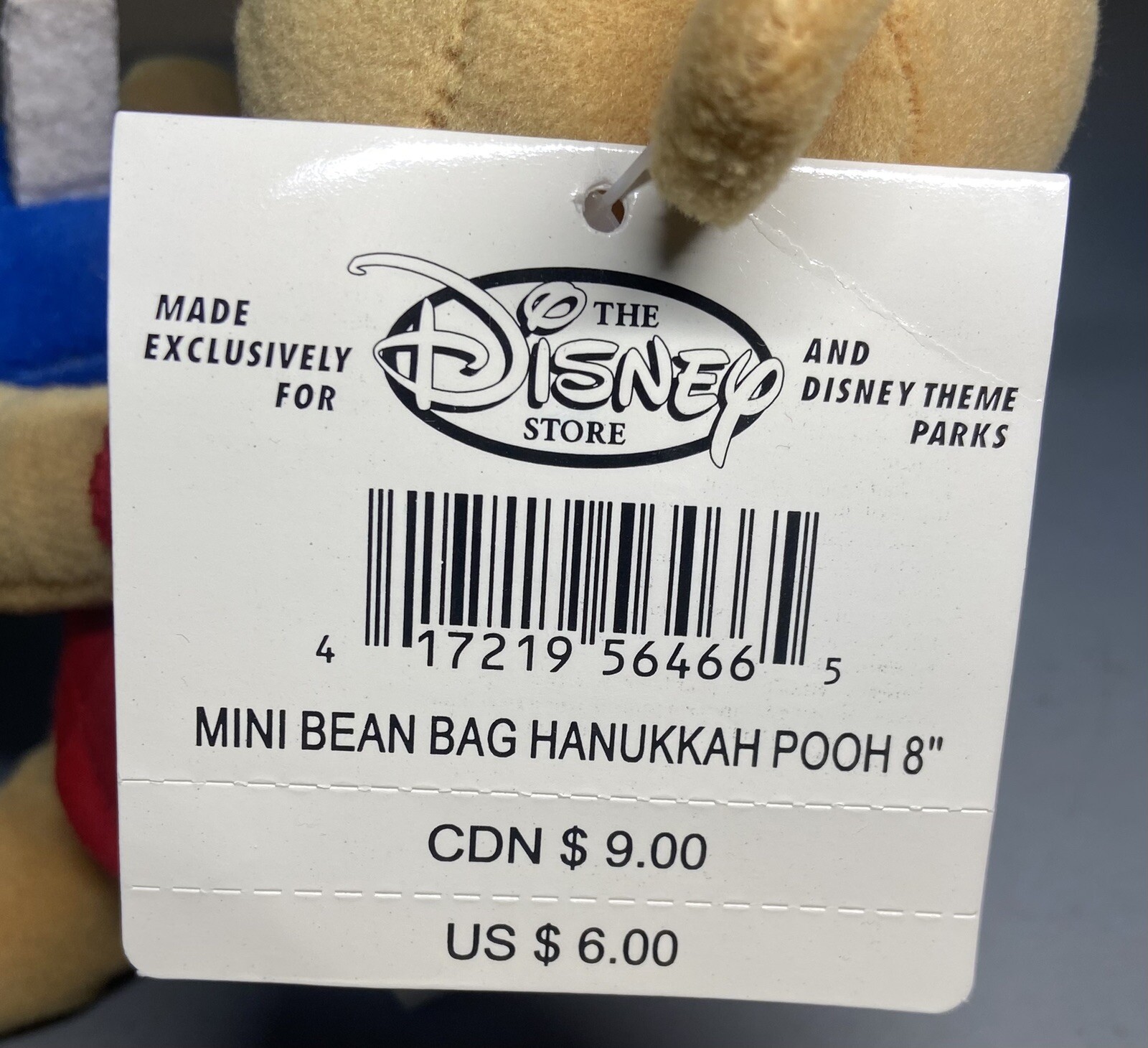 VTG Disney Store Winnie the Pooh Hanukkah w Dreidel 8 Bean Plush New w Tags