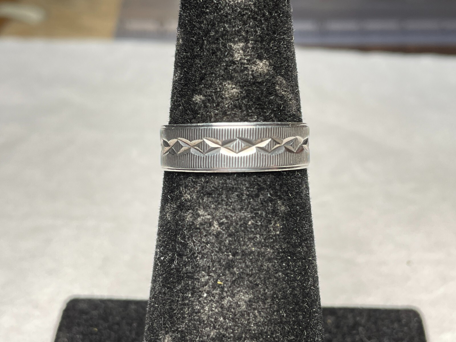 Vintage Sterling Silver 925 Band Style Ring with Etched Design Size 6.