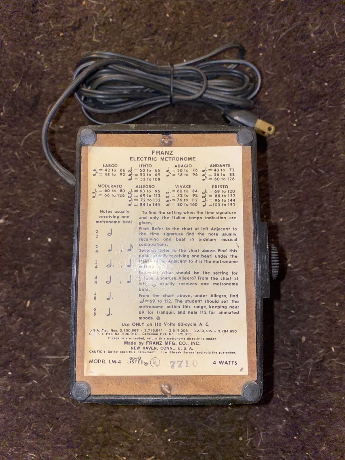 Vintage Franz Electric Metronome, Model LM-4 - Black Plastic - Tested Working