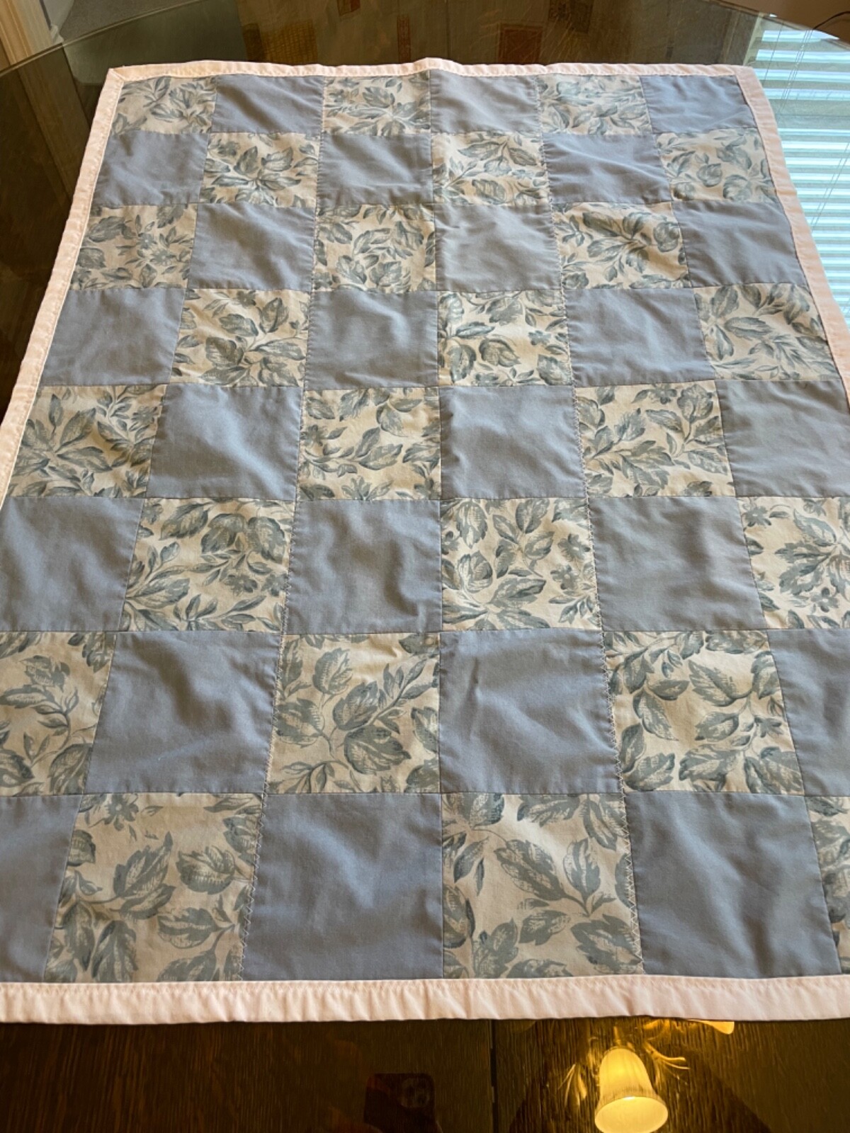 как выглядит Handmade Baby Quilt Lap Quilt, toddler mat vintage unused blue 28 x 36 farmhouse фото
