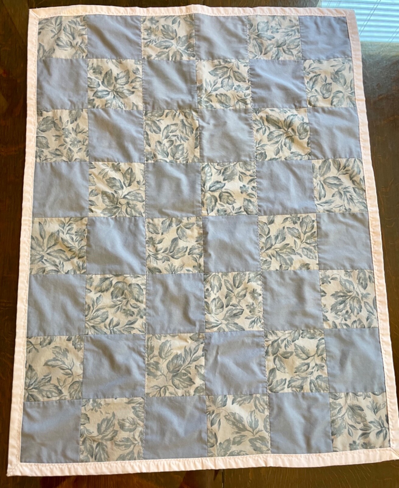 Handmade Baby Quilt Lap Quilt, toddler mat vintage unused blue 28 x 36 farmhouse