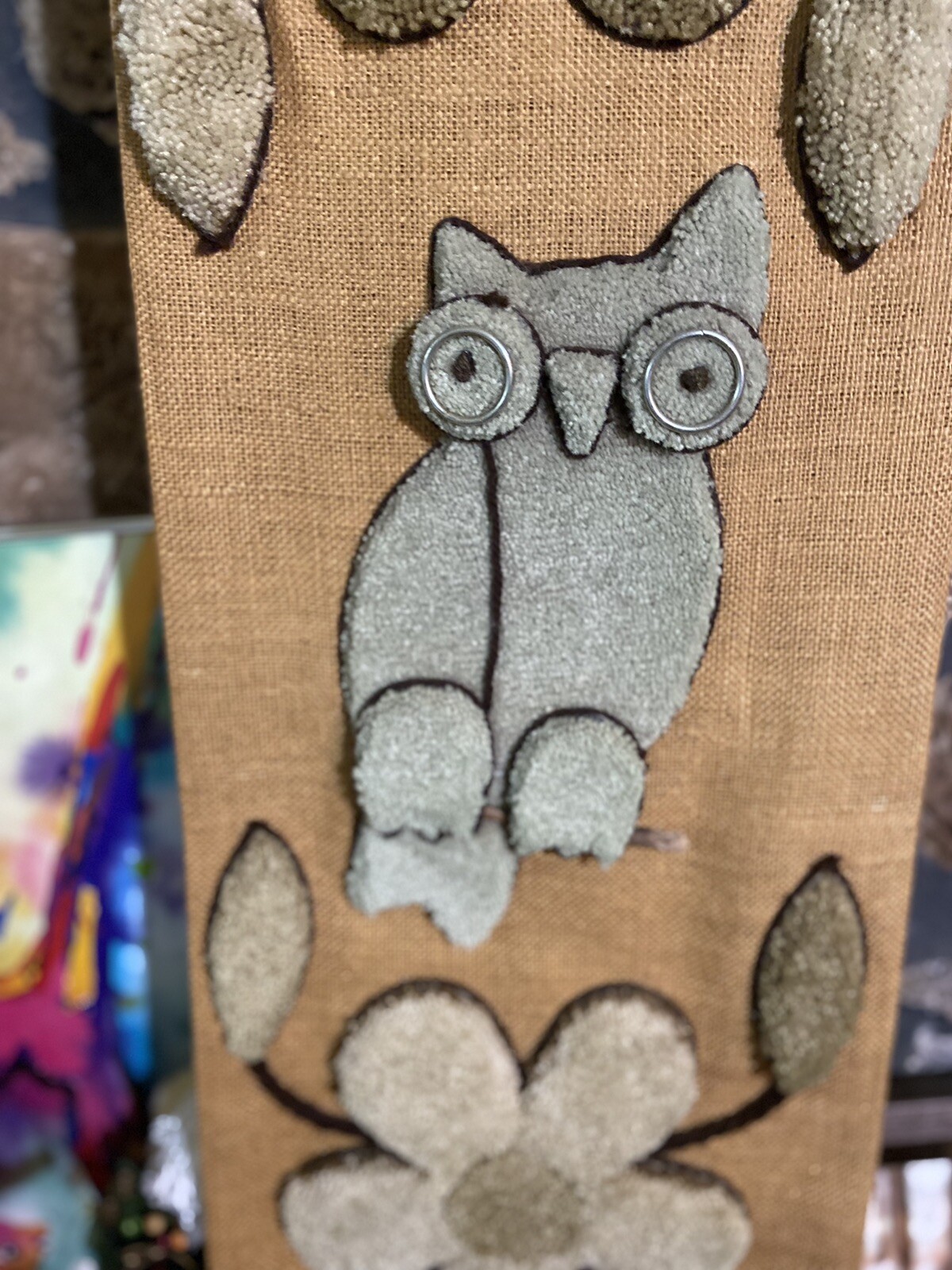 как выглядит 48" Vintage Macrame MCM Owl BOHO Decor Wall Hanging Burlap MCM 1970 s Near Mint фото