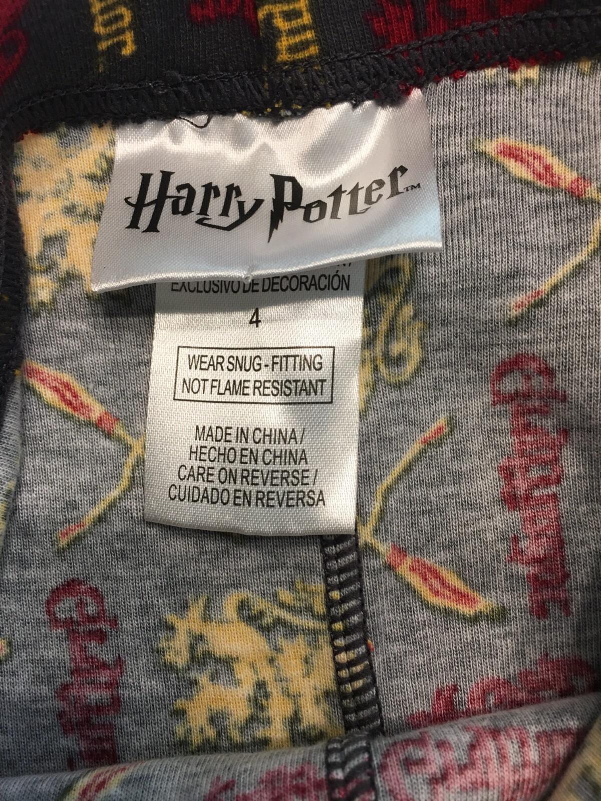 HARRY POTTER GRYFFINDOR Kids 2-pc. Pajama Set, Sleepwear Long Sleeved Size 4 NEW