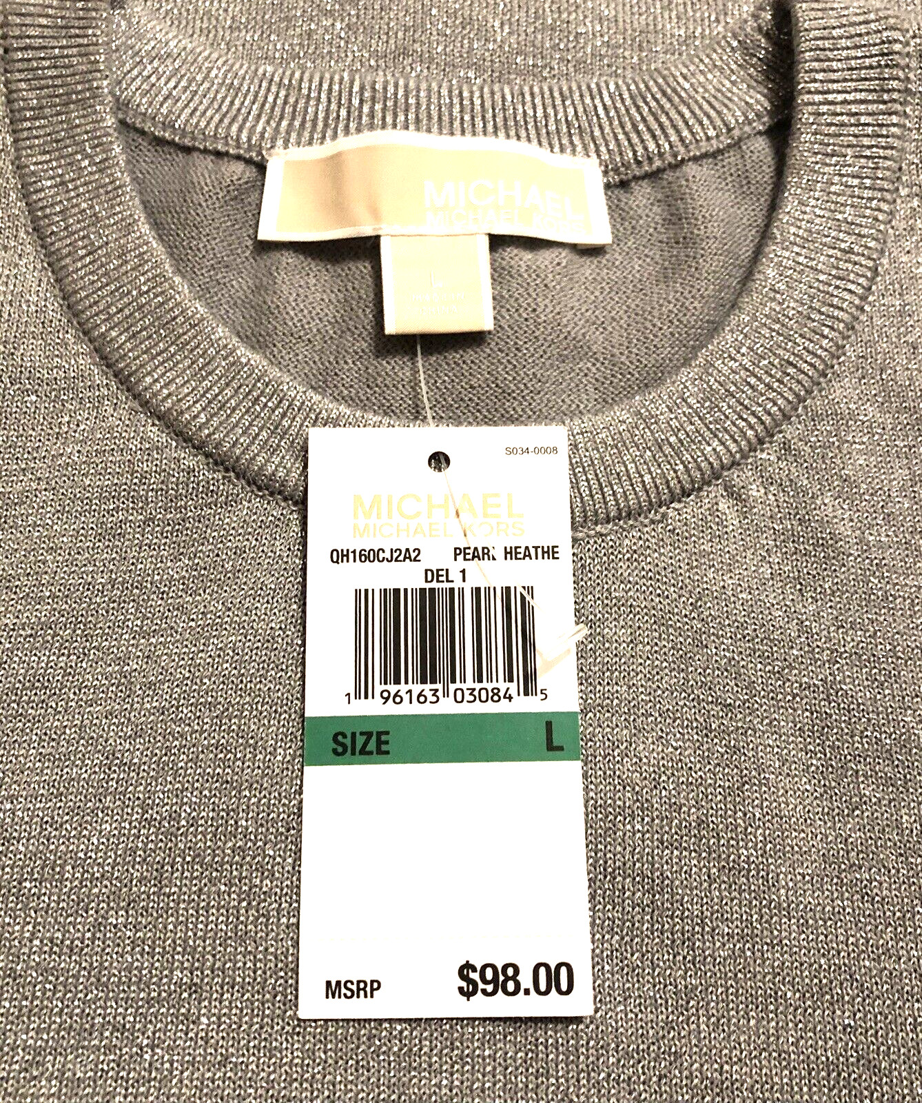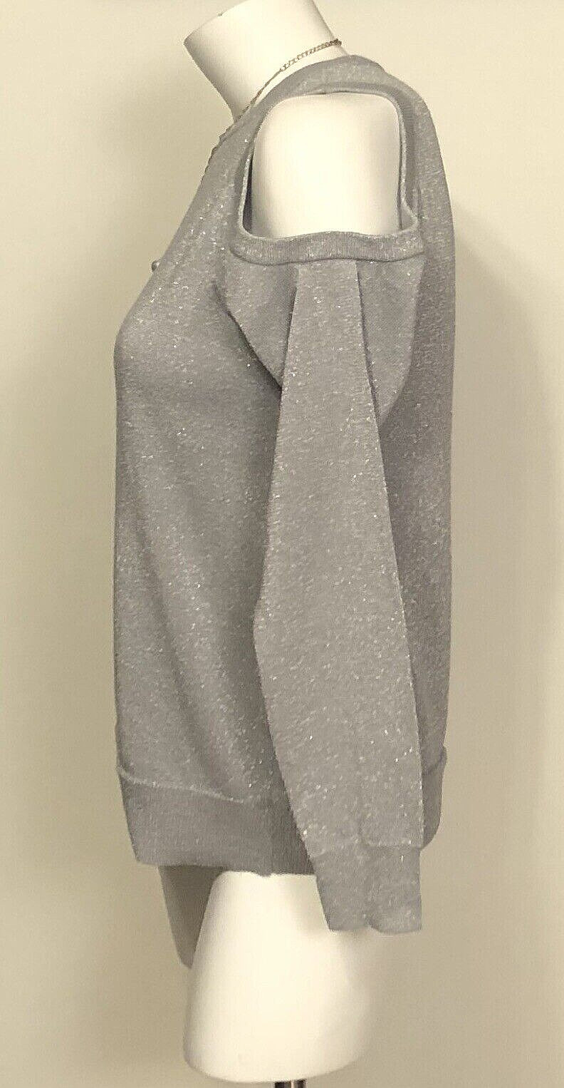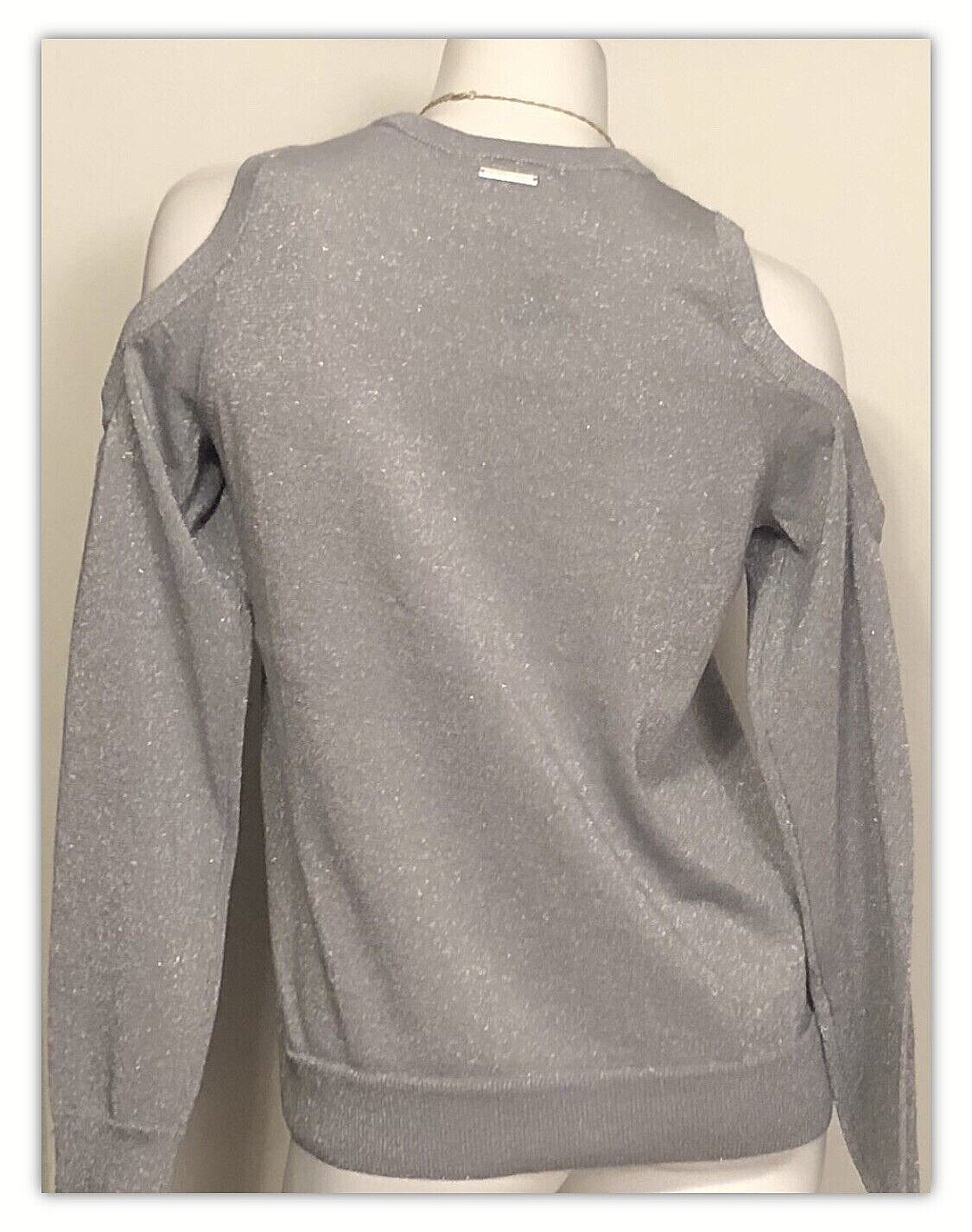 как выглядит NWT WOMENS MICHAEL KORS GRAY COLD SHOULDER CREW NECK SWEATER LARGE MSRP 98.00 фото