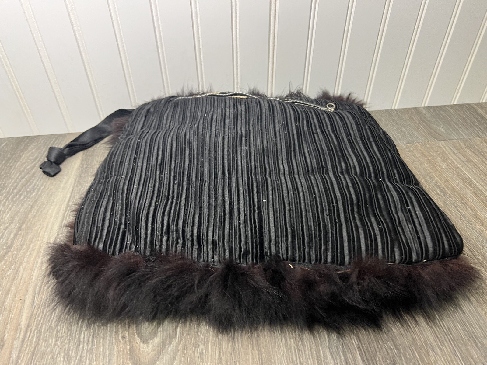 Vintage Large Fox Minx Fur Muff Hand Warmer Inner Zipper Purse Wrist Strap