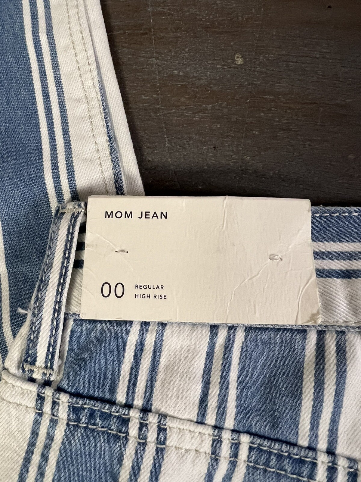 Womens American Eagle High Rise Mom Jeans New With Tags Size 00 Blue White