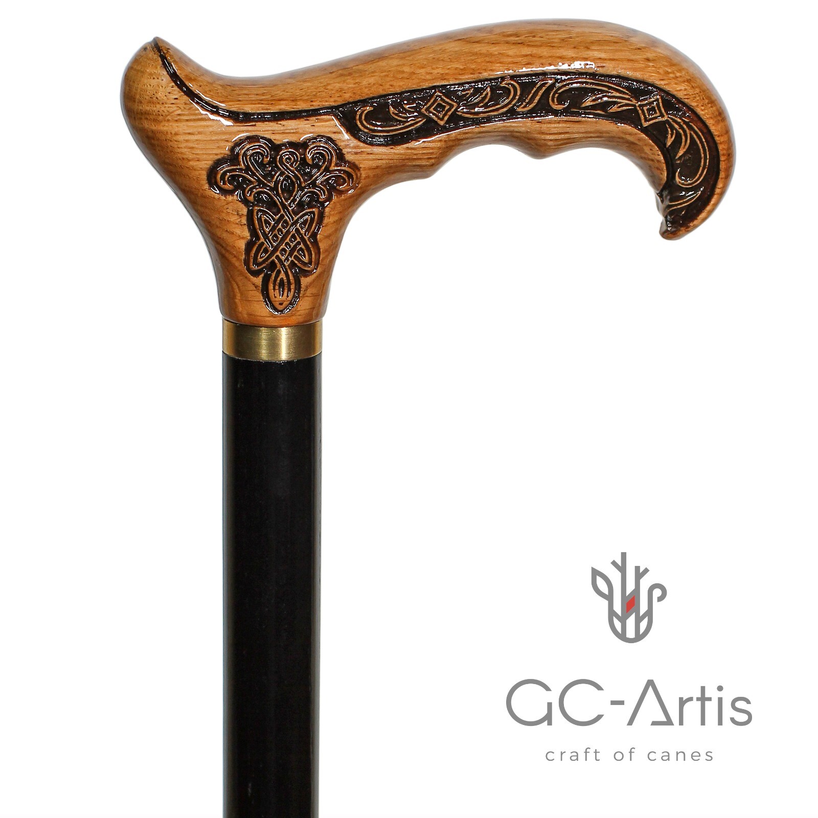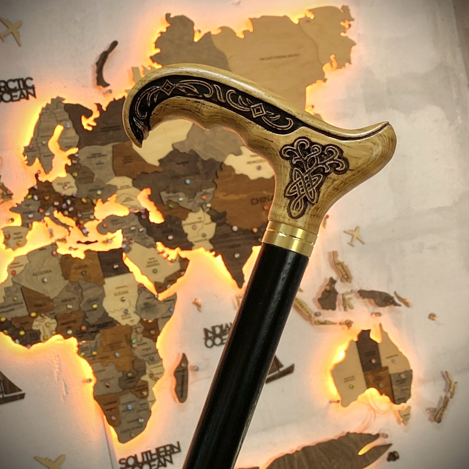 как выглядит New Elegant Cane Walking Stick Wooden carved Light Celtic Style for men women фото
