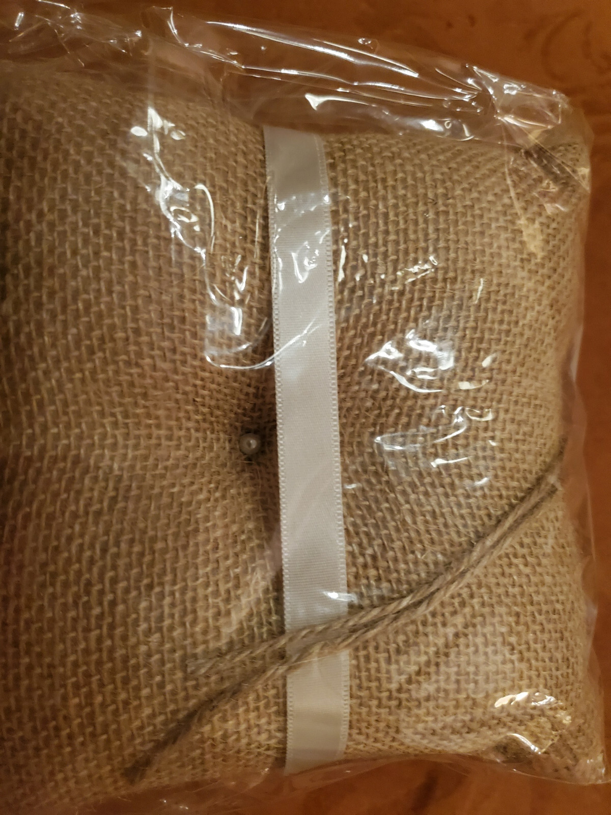 Burlap and Lace Ring Bearer Pillow Strings Ribbon 6 Rustic Country Wedding BNIP