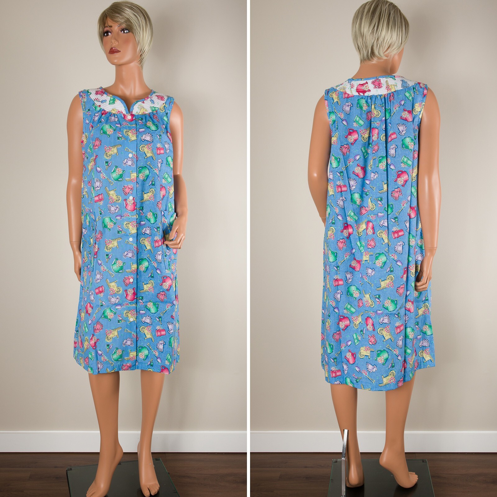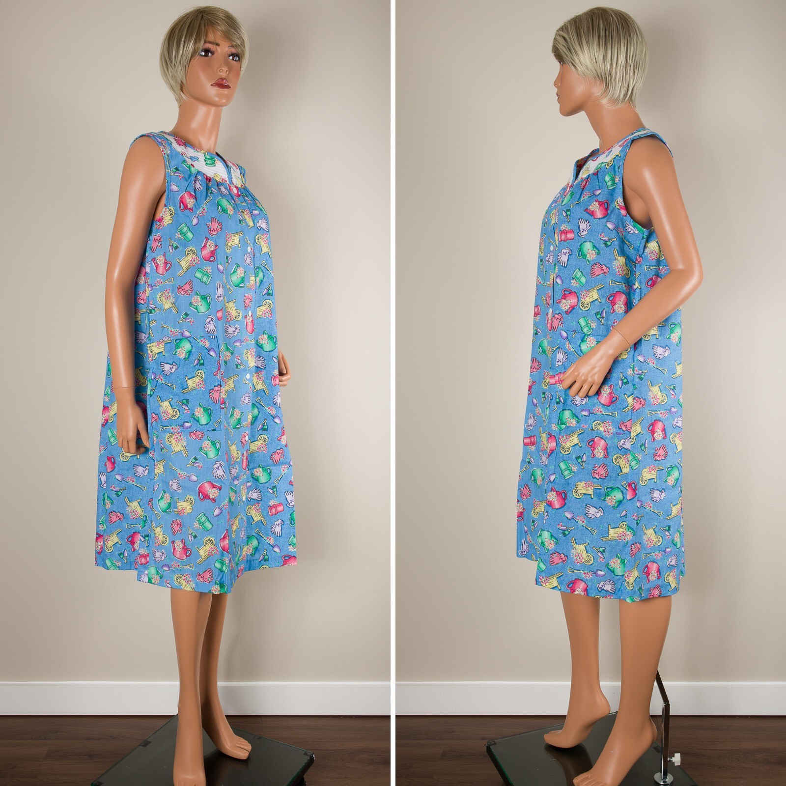 LEISURE LIFE Size M Blue Robe House Dress Patio Cotton Blend NWOT