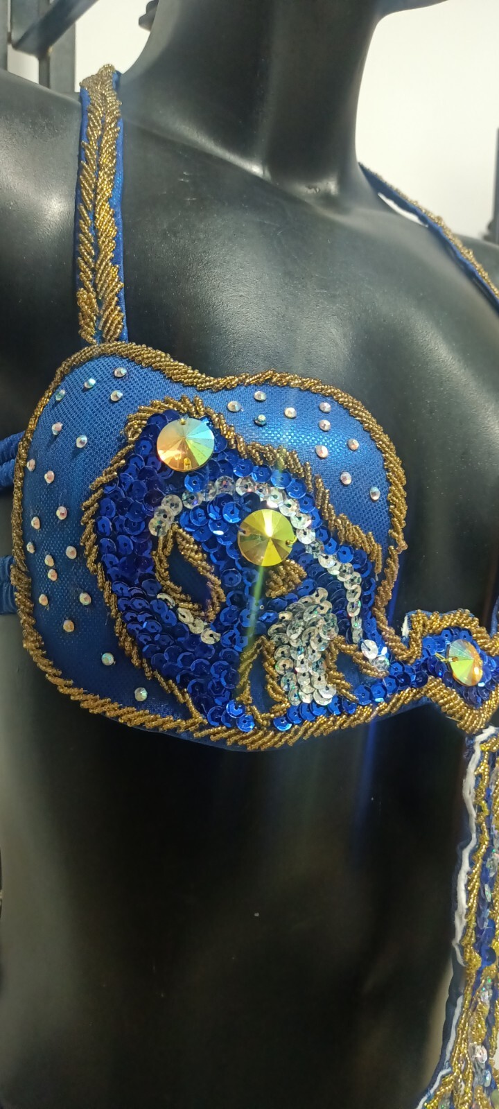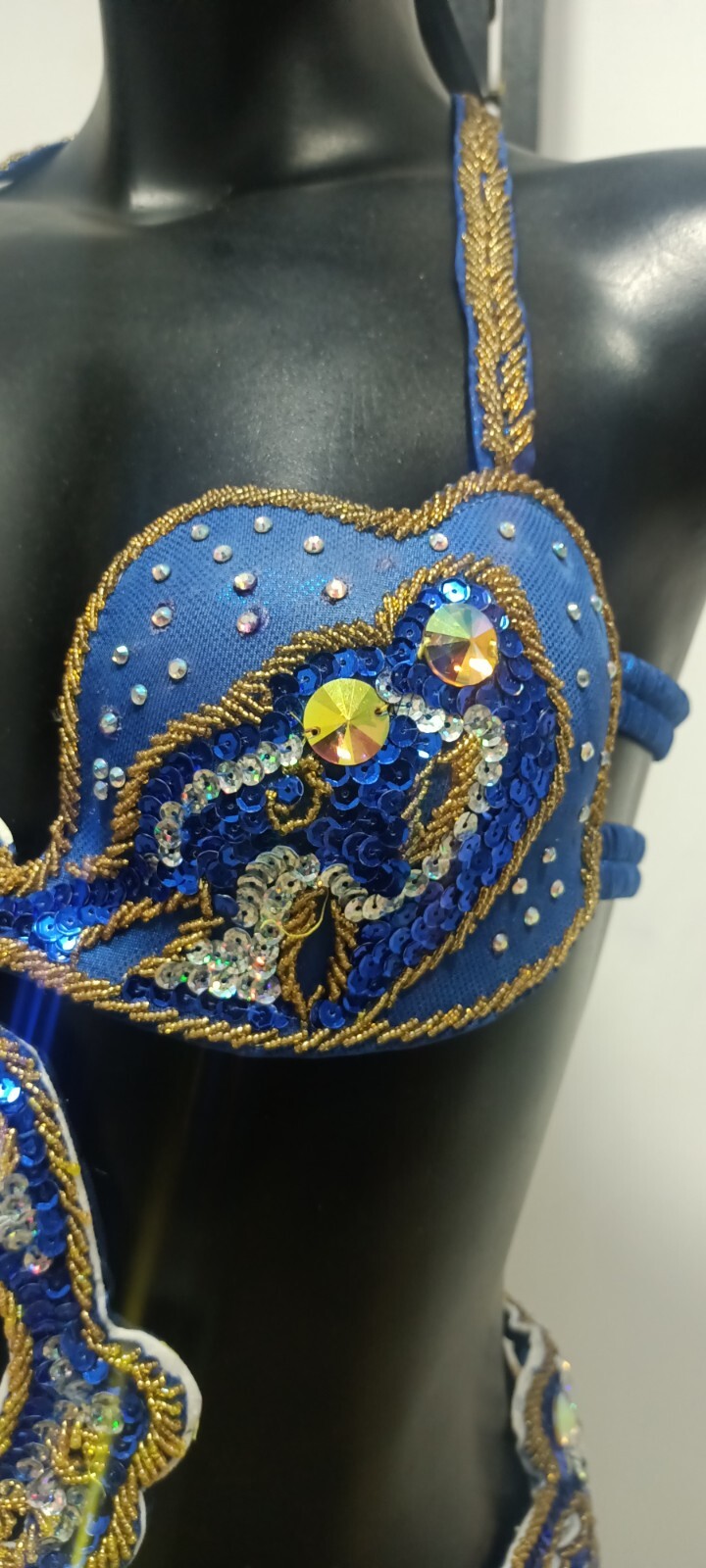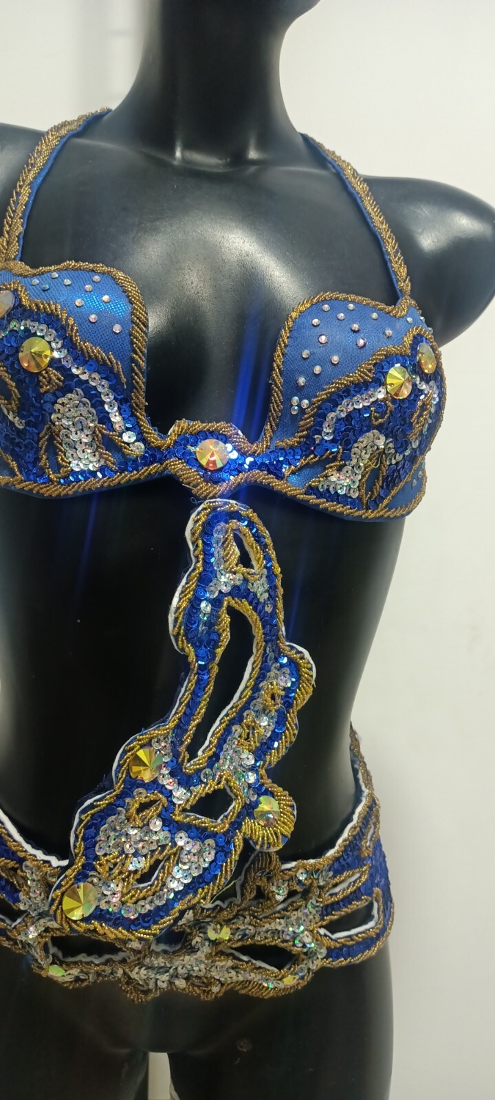 как выглядит Egyptian Belly Dance Costume bra Belt Set Professional Dancing Dark Blue Gold фото