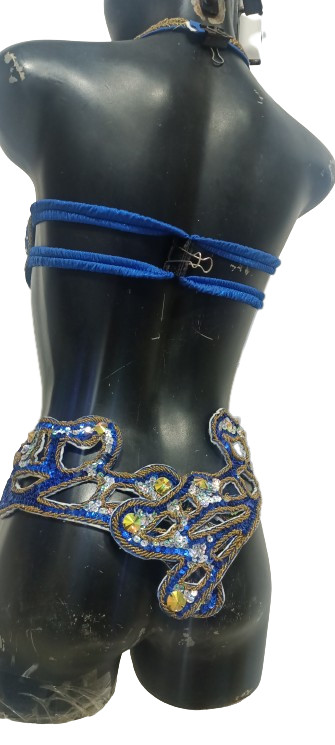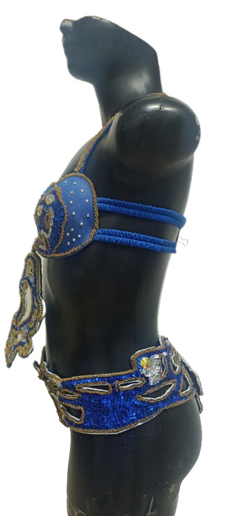 Egyptian Belly Dance Costume bra Belt Set Professional Dancing Dark Blue Gold