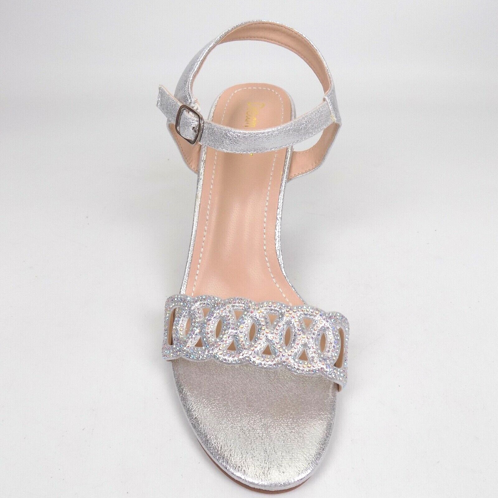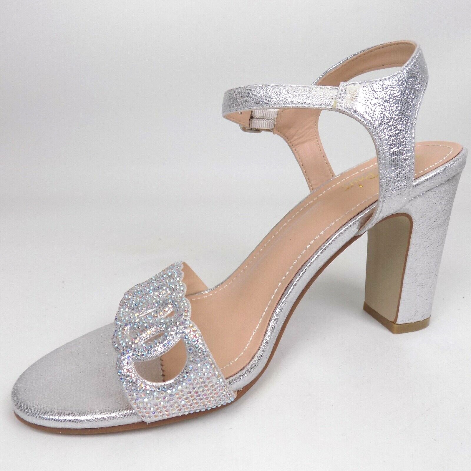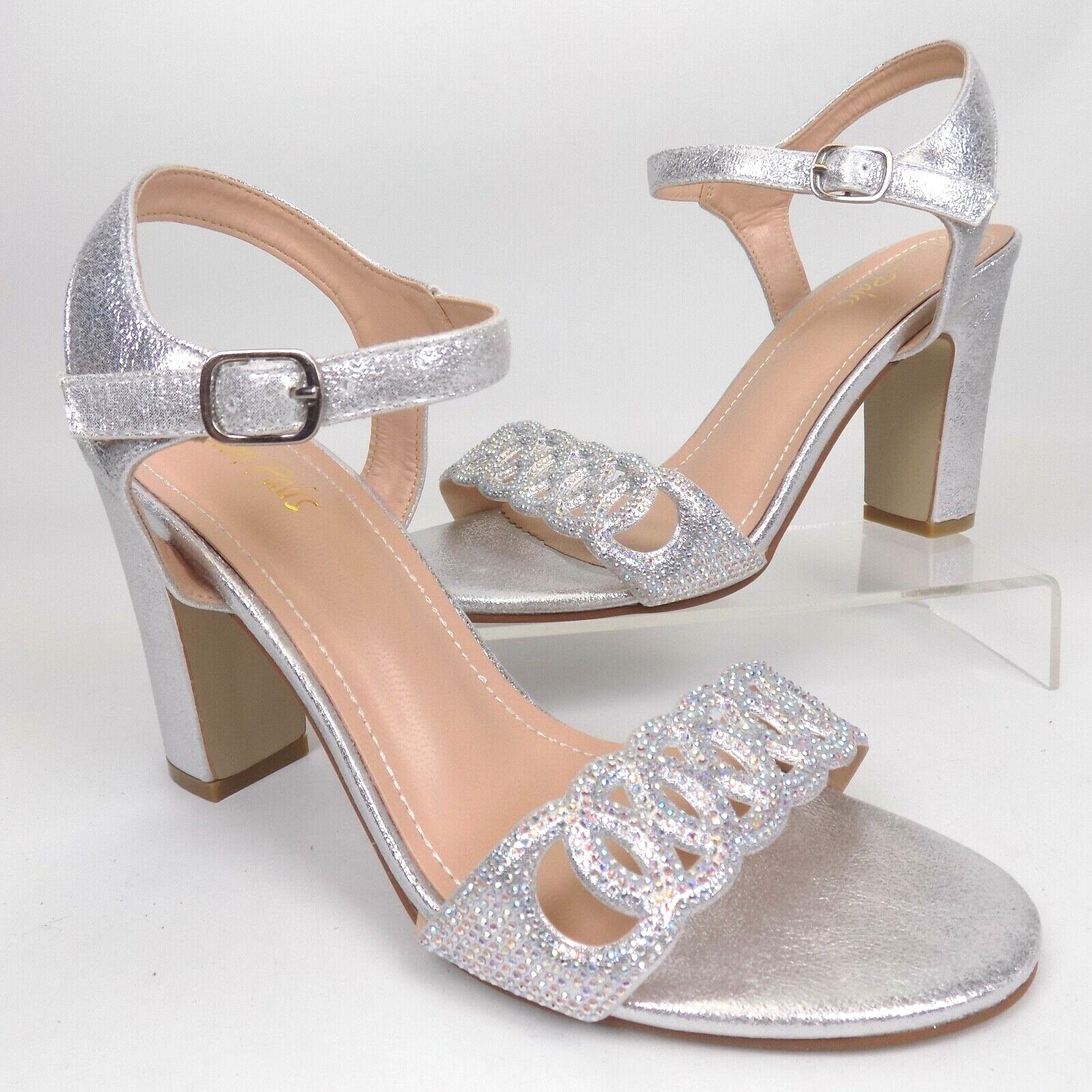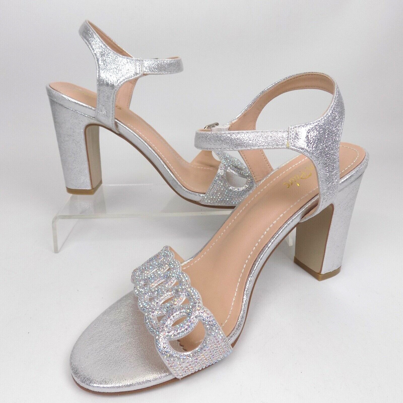NEW Dream Pairs Women Gisela-2 Evening Heels Ankle Strap Silver Sandals Size 8 M