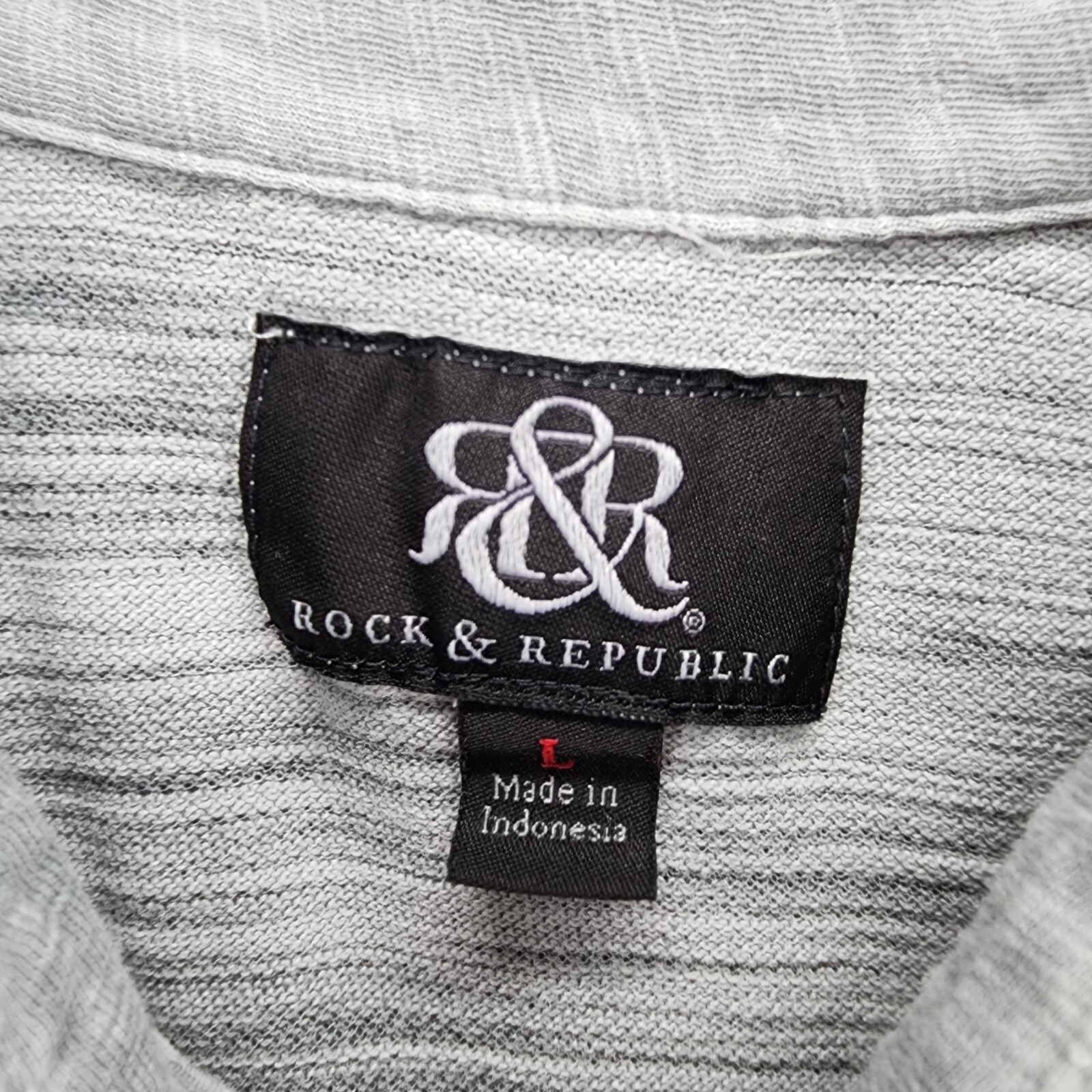 как выглядит Rock Republic Polo Shirt Mens Large Gray Short Sleeve фото