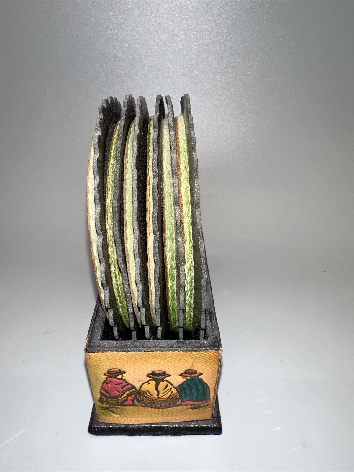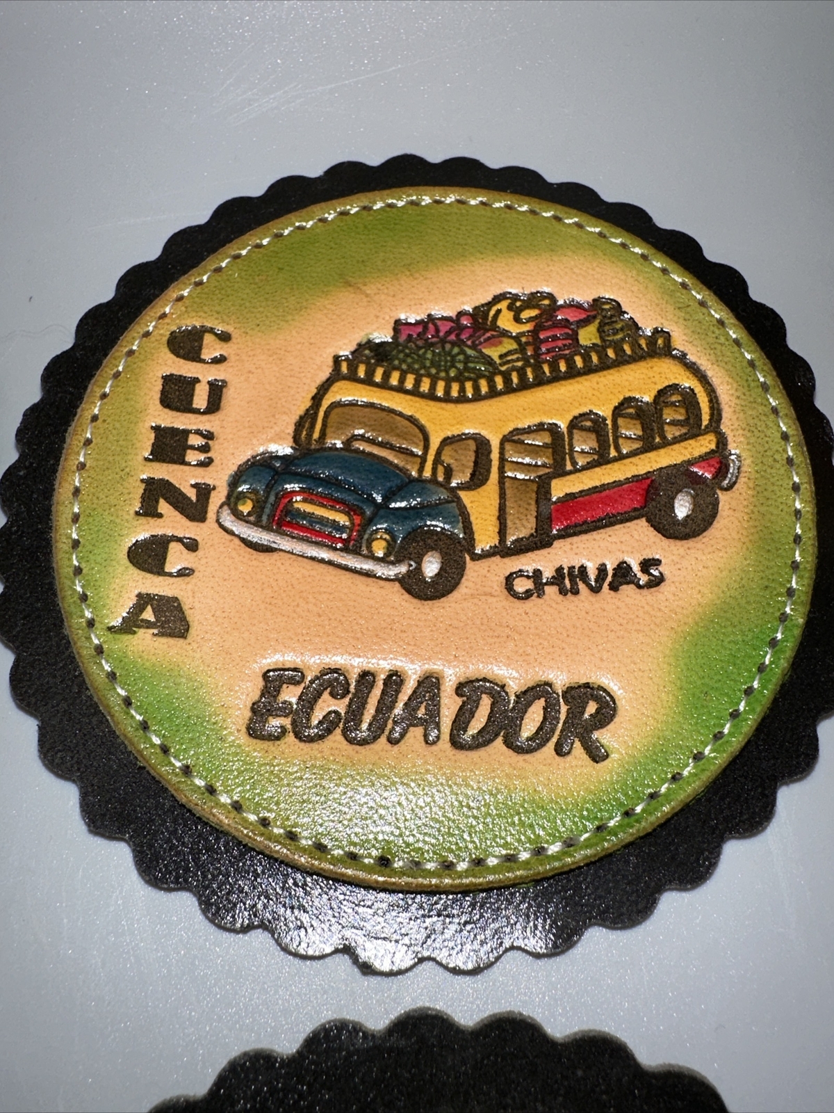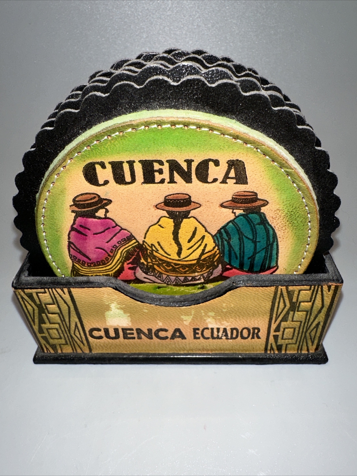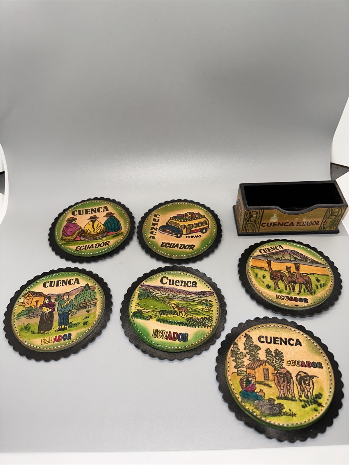 VINTAGE HAND TOOLED LEATHER COASTERS CUENCA ECUADOR SET OF 6