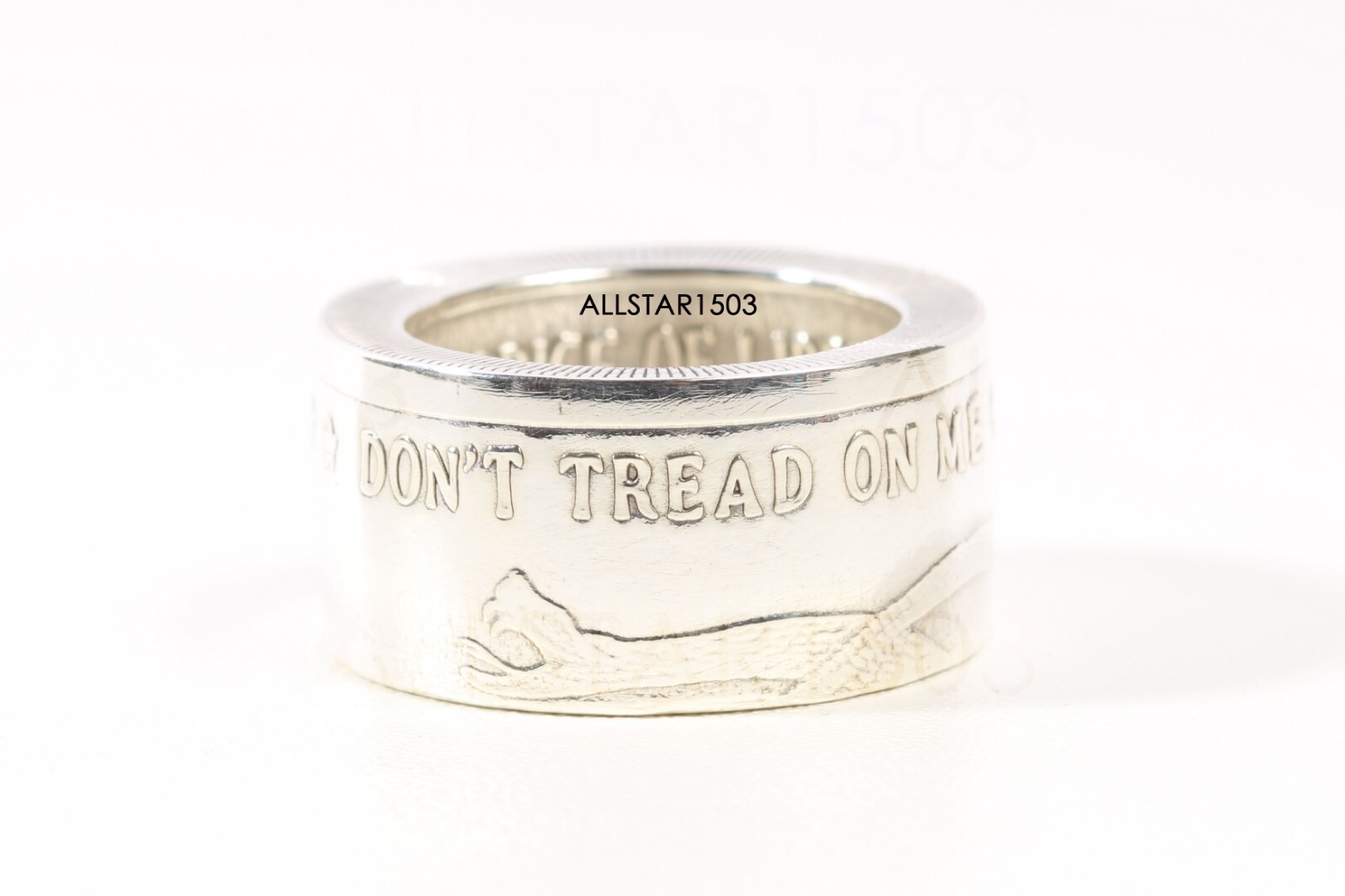 как выглядит Dont Tread on Me Handcrafted .999 Silver Ring from 1 oz Round -Polished Finish фото