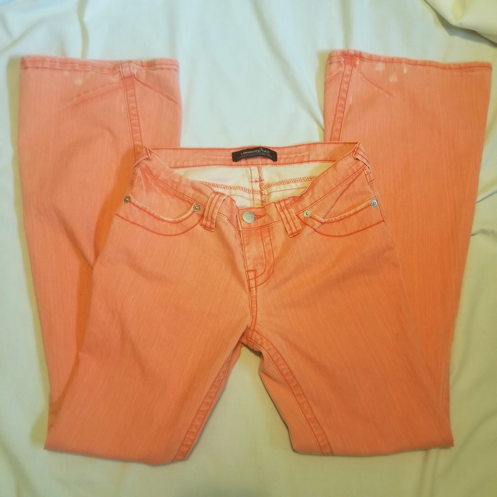 как выглядит Vintage 90s 2000s y2k orange Bellbottom flares london jeans pants low rise фото