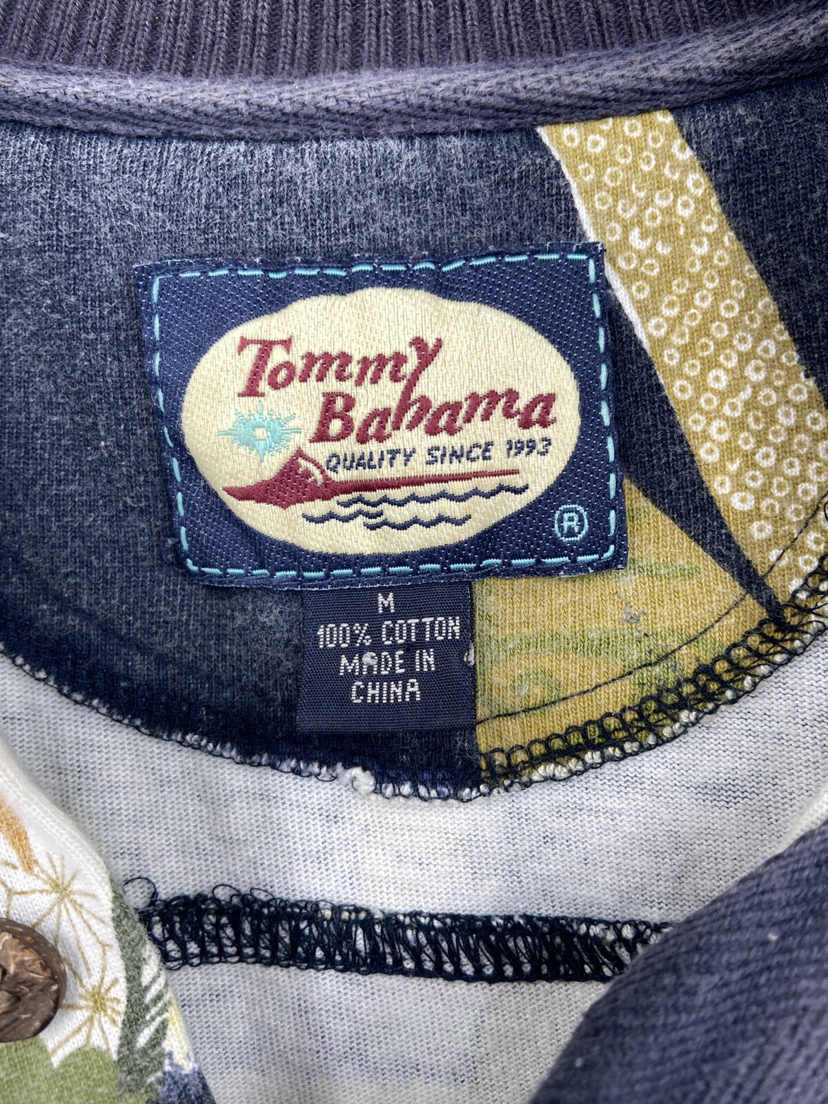 как выглядит Tommy Bahama Polo Shirt Mens Medium Blue Island Print Short Sleeve 100 Cotton фото
