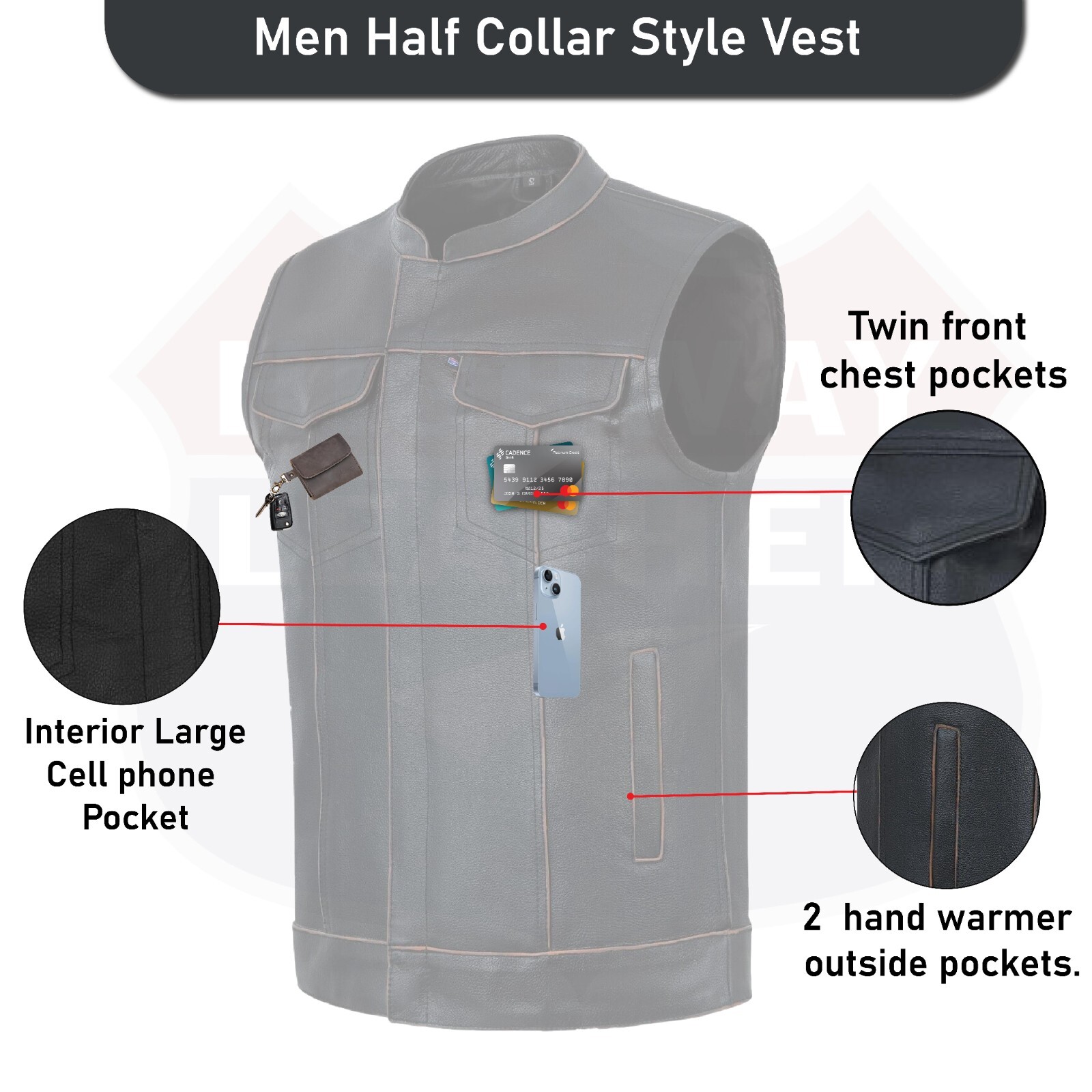 SOA Men's Rub Buff Leather Vest Anarchy Motorcycle Biker Club Concealed Carry