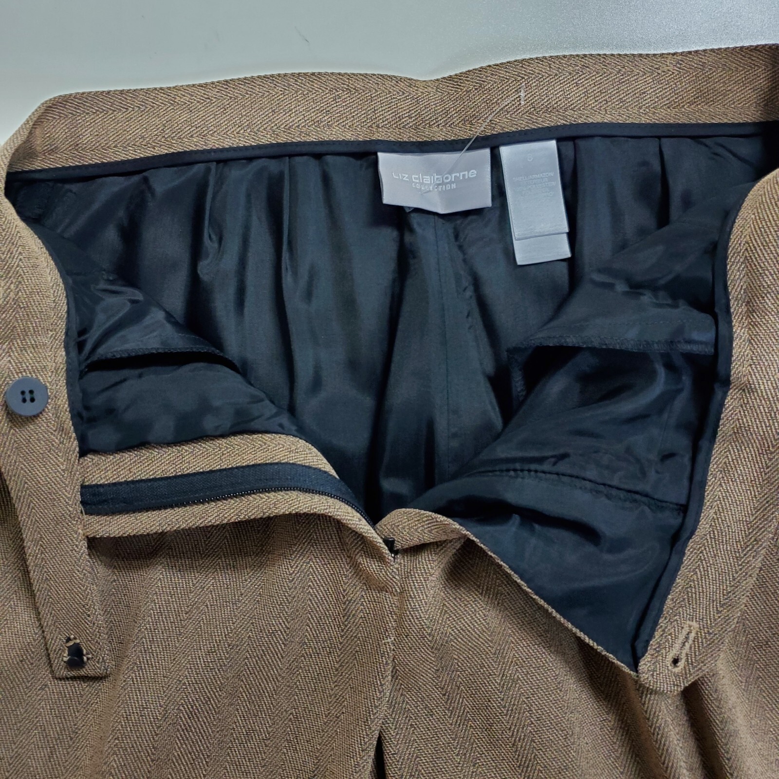 Liz Claiborne Women 8 Gold Brown Herringbone Dress Pants Fully Lined NWT