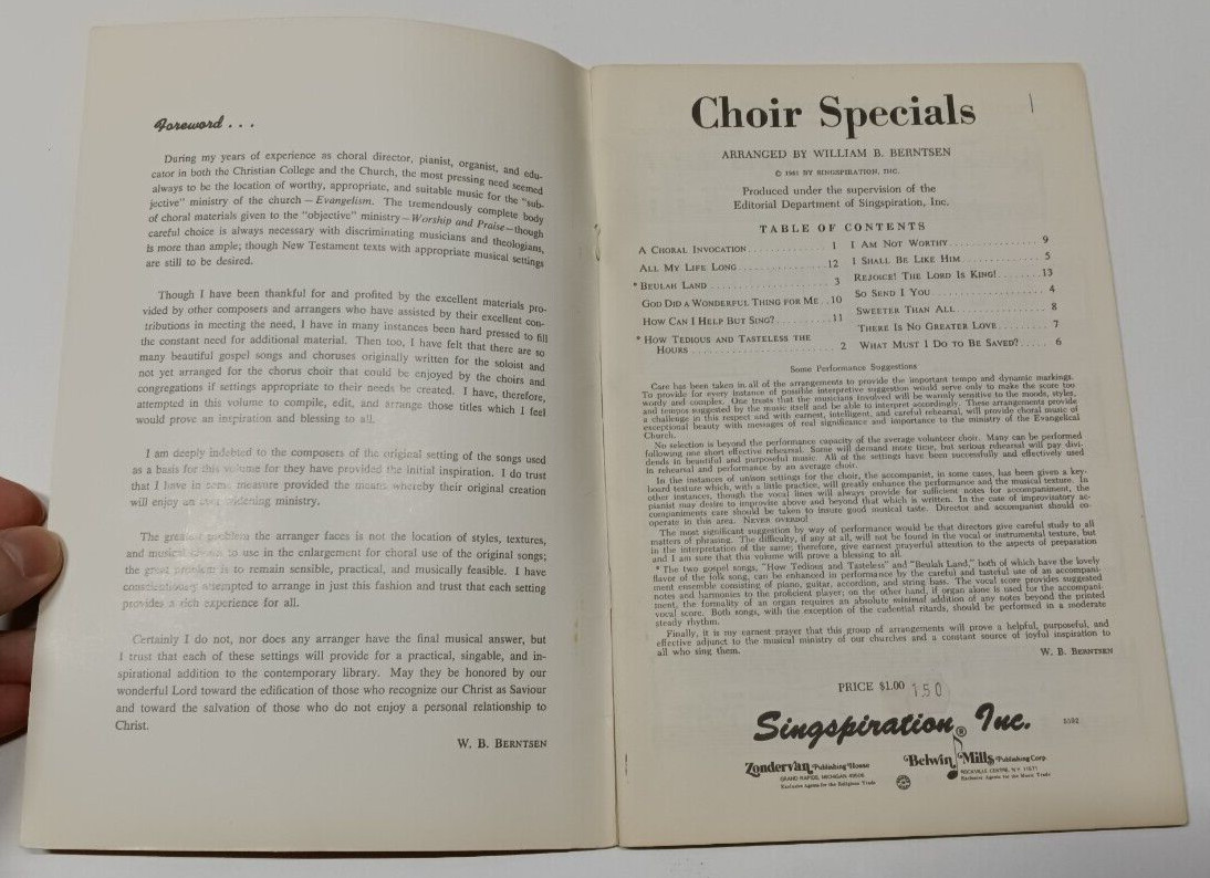 Choir Specials by W. B. Berntsen - Singspiration 1961 - RARE