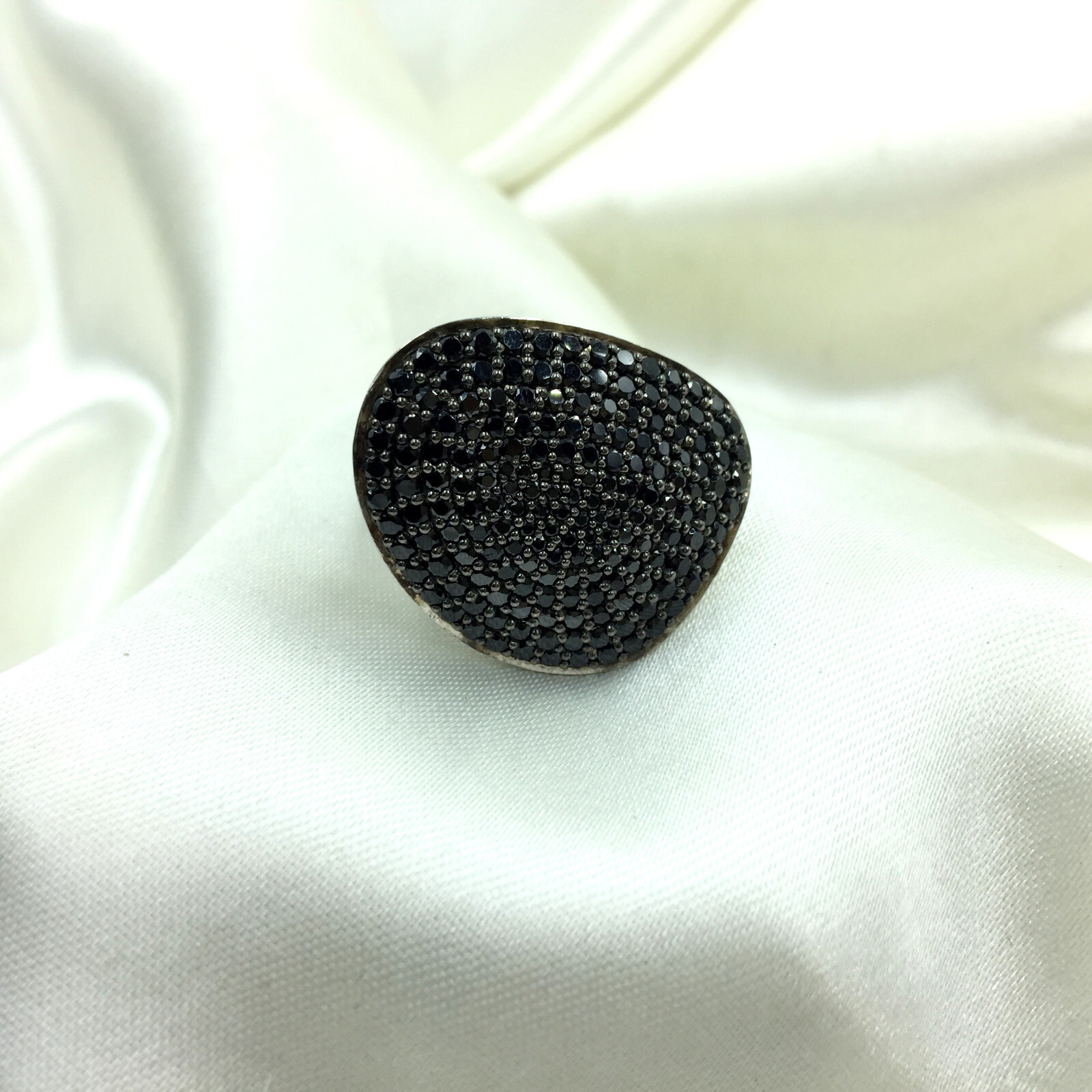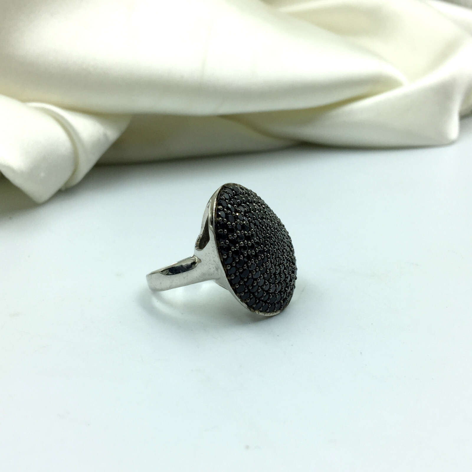 как выглядит Glittering Black Pave Set Onyx In 935 Silver Fashion Women