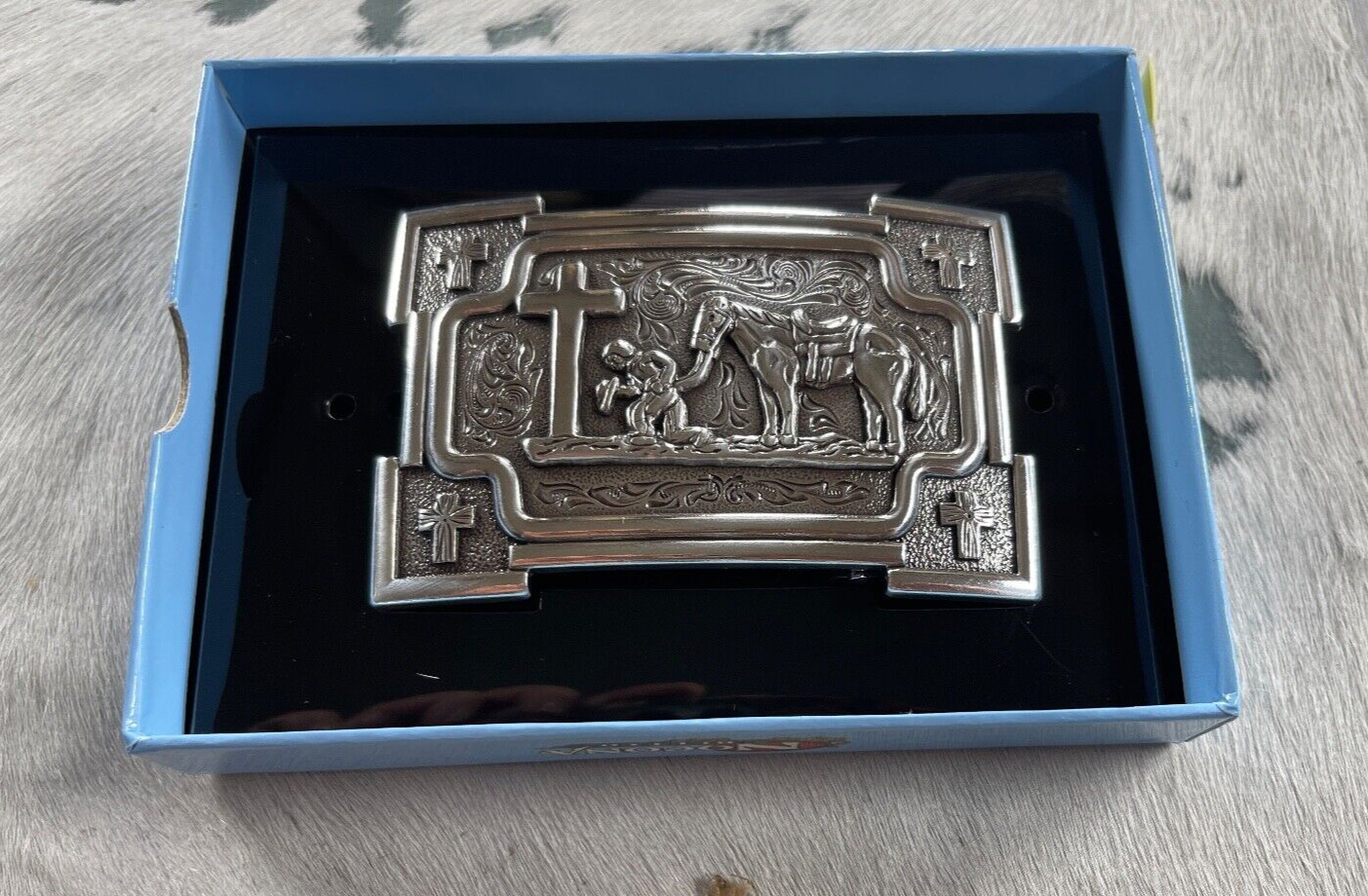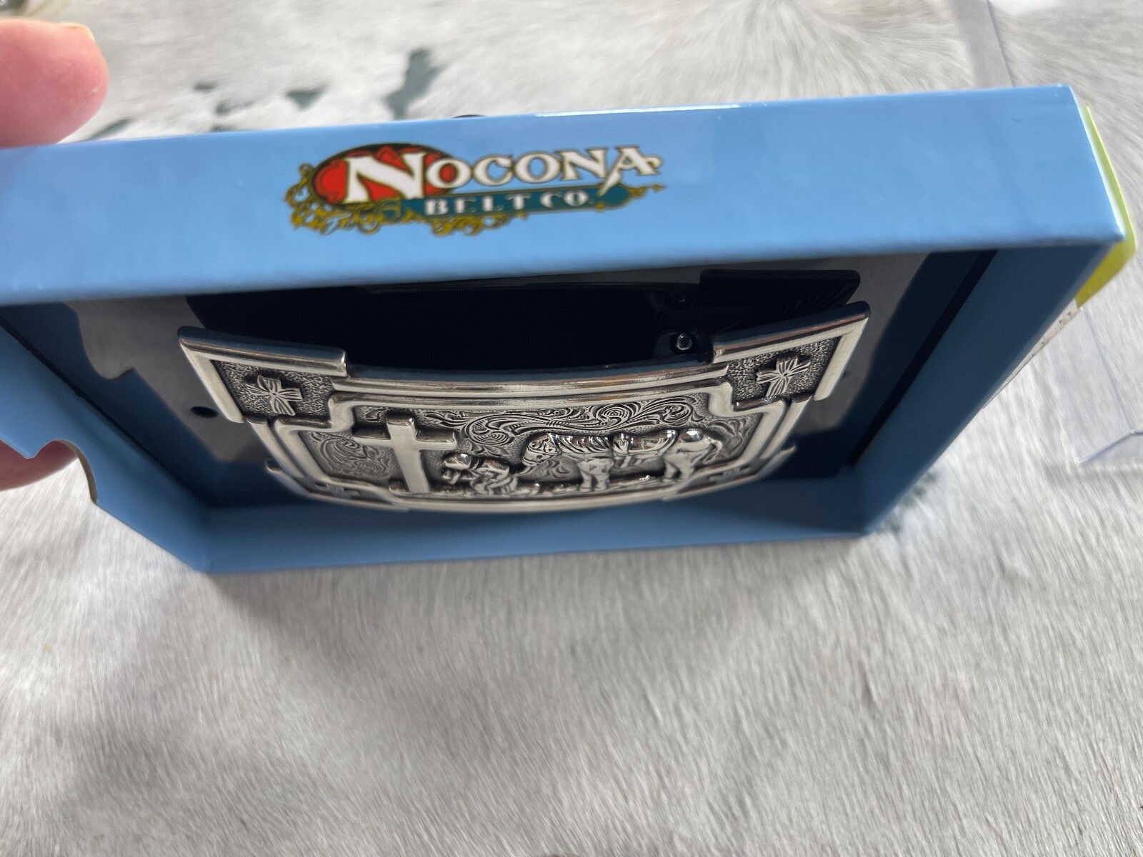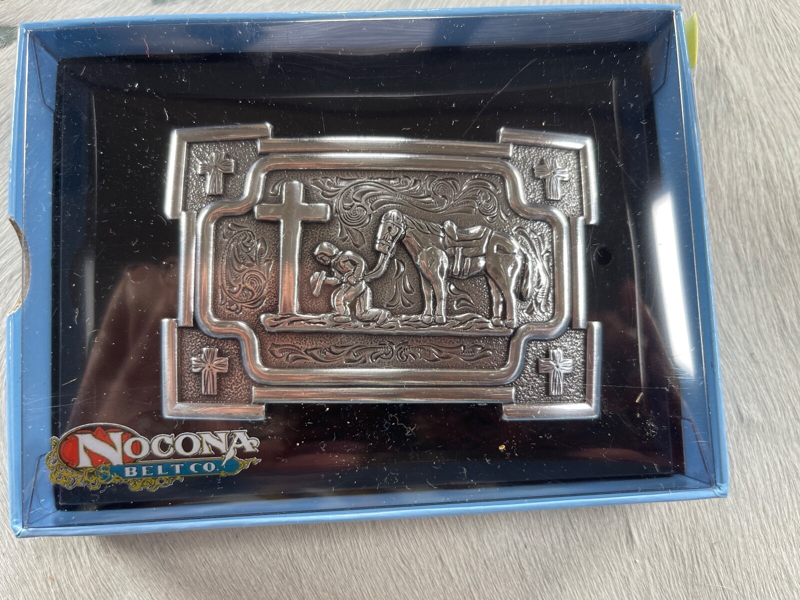 как выглядит Nocona Mens Belt Buckle 3 3/8 X 2.25 in Cowboy Horse Cross Rectangle фото