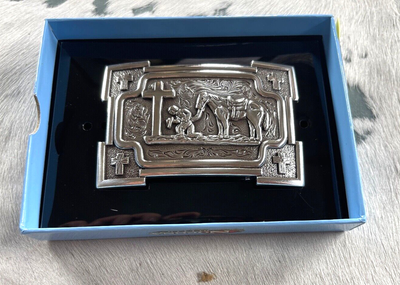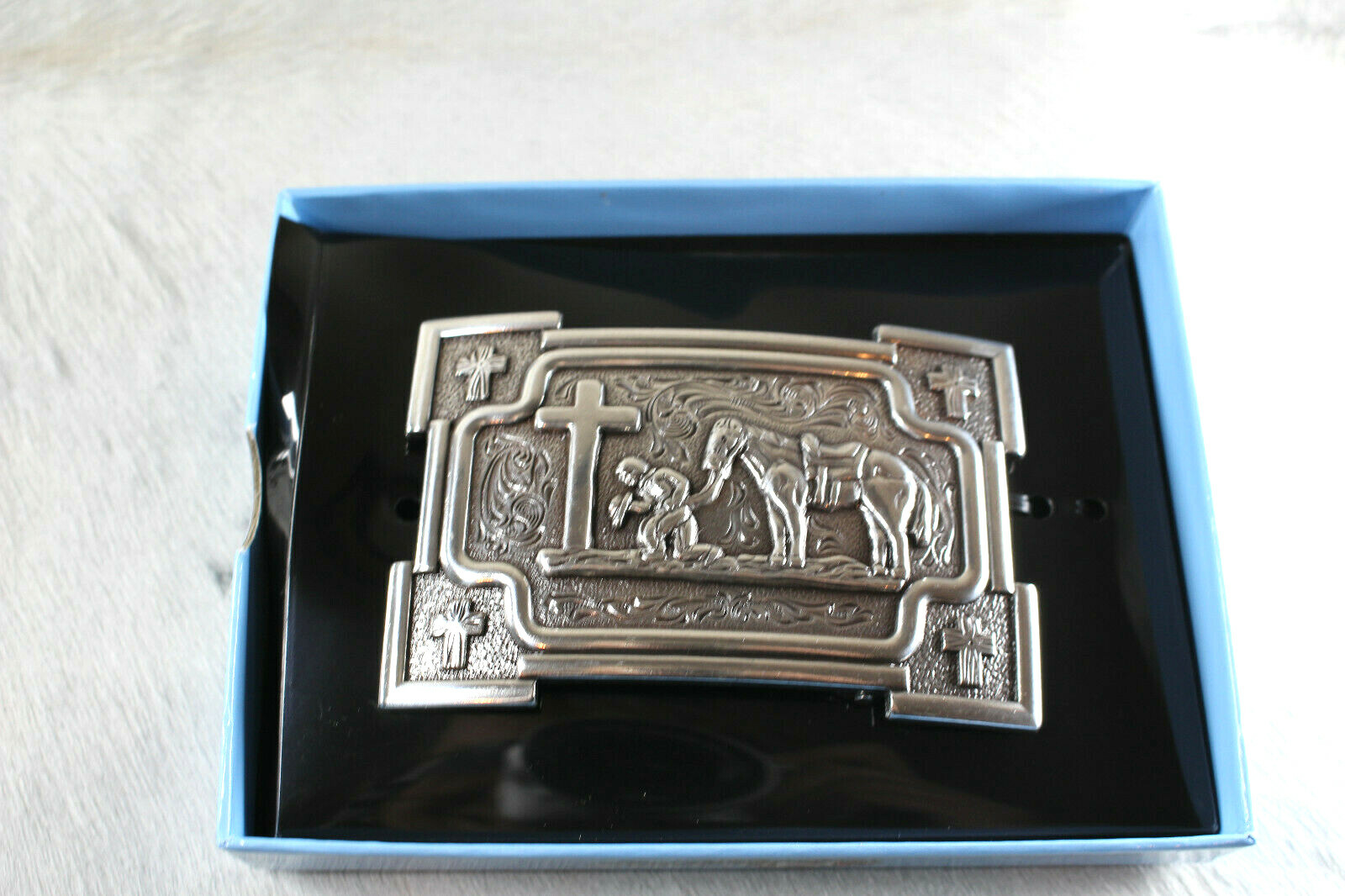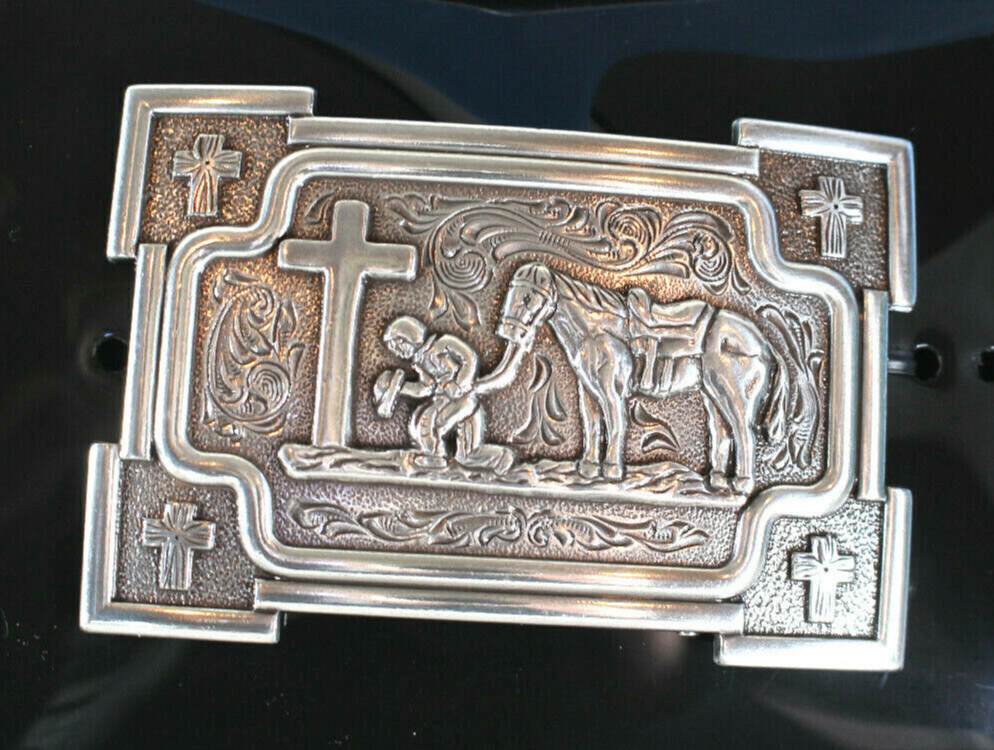 Nocona Mens Belt Buckle 3 3/8 X 2.25 in Cowboy Horse Cross Rectangle