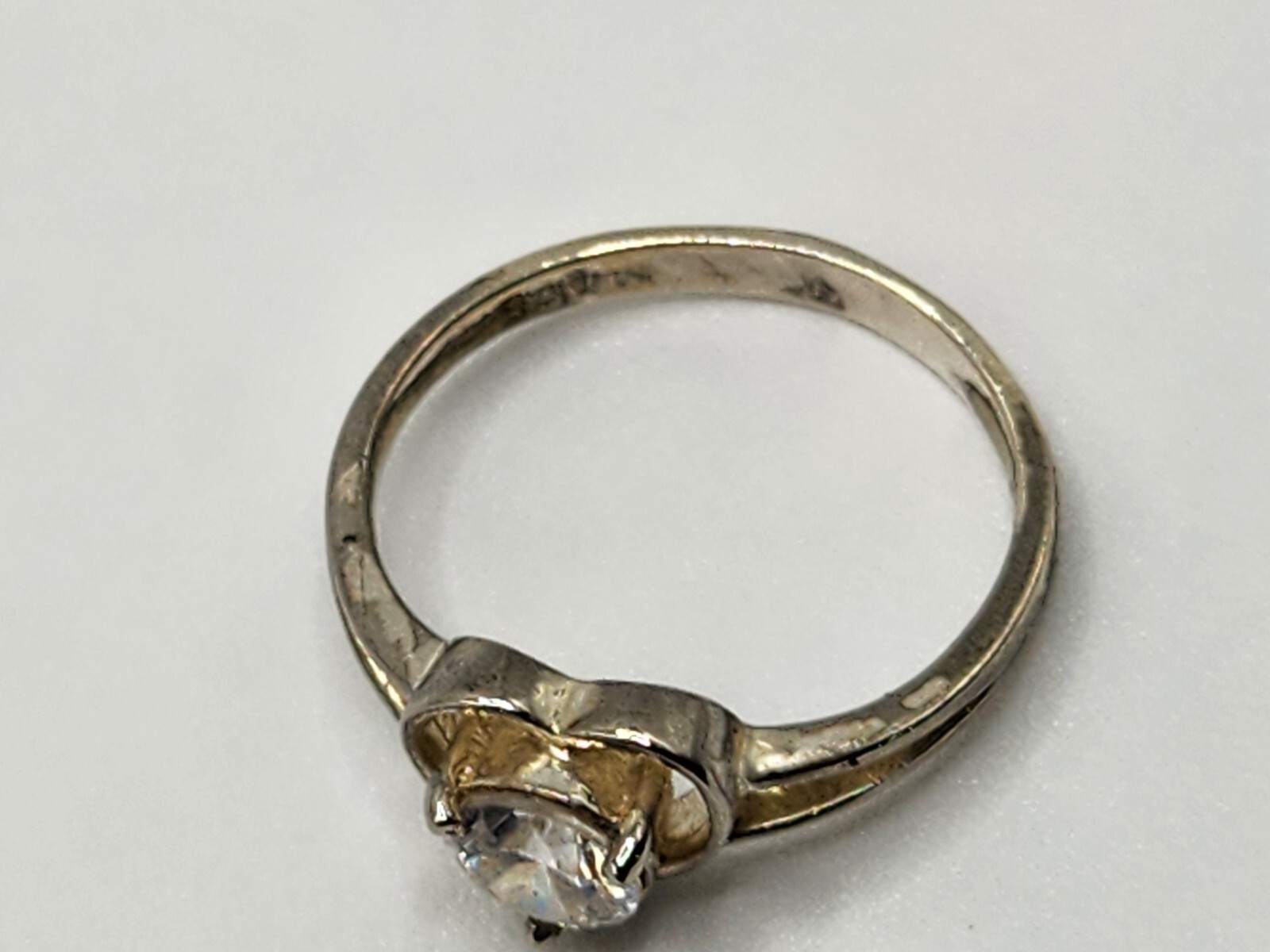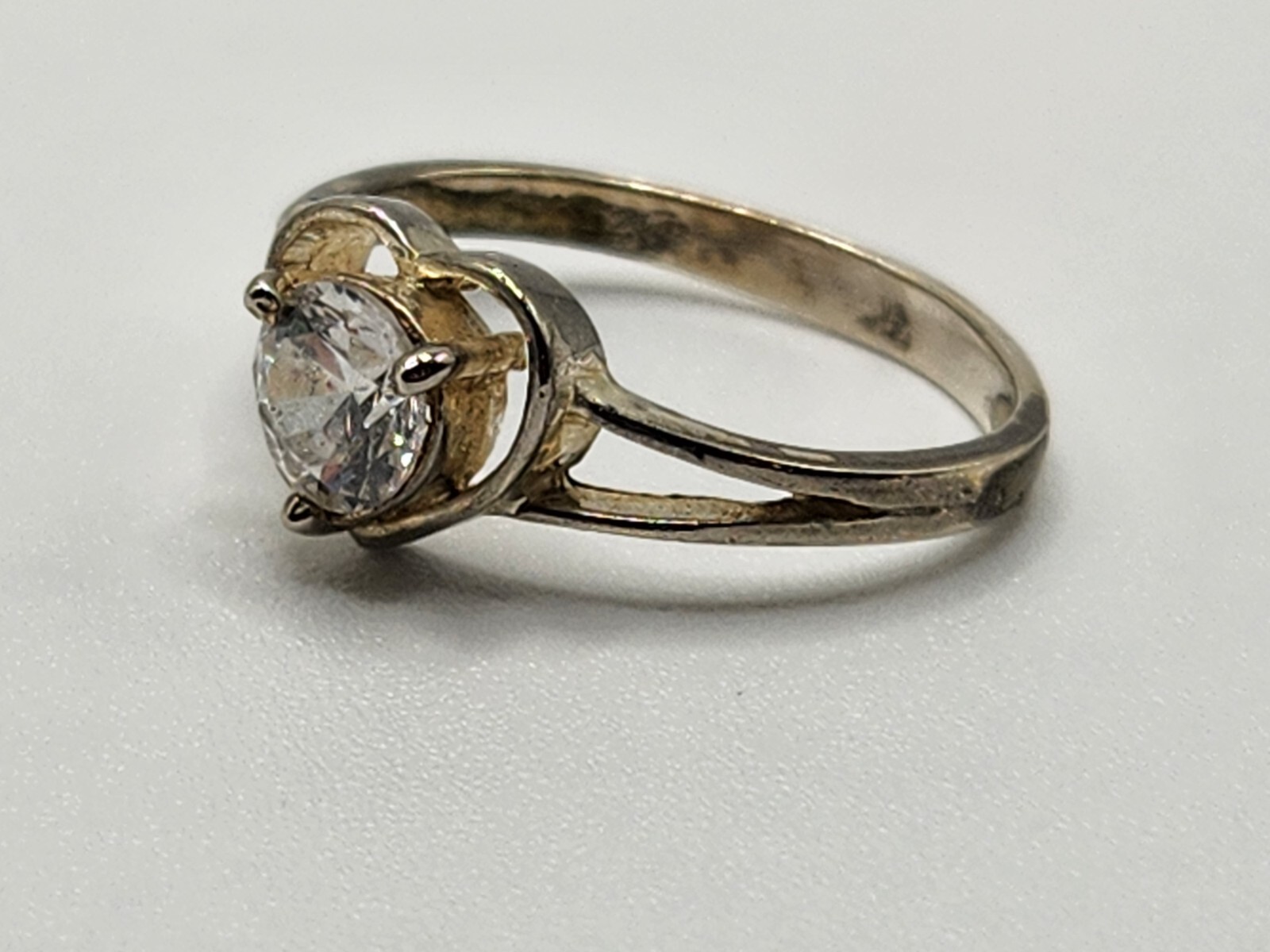 как выглядит Vintage Size 8.25 Sterling Silver Ring Round Clear Stone in Heart Design фото