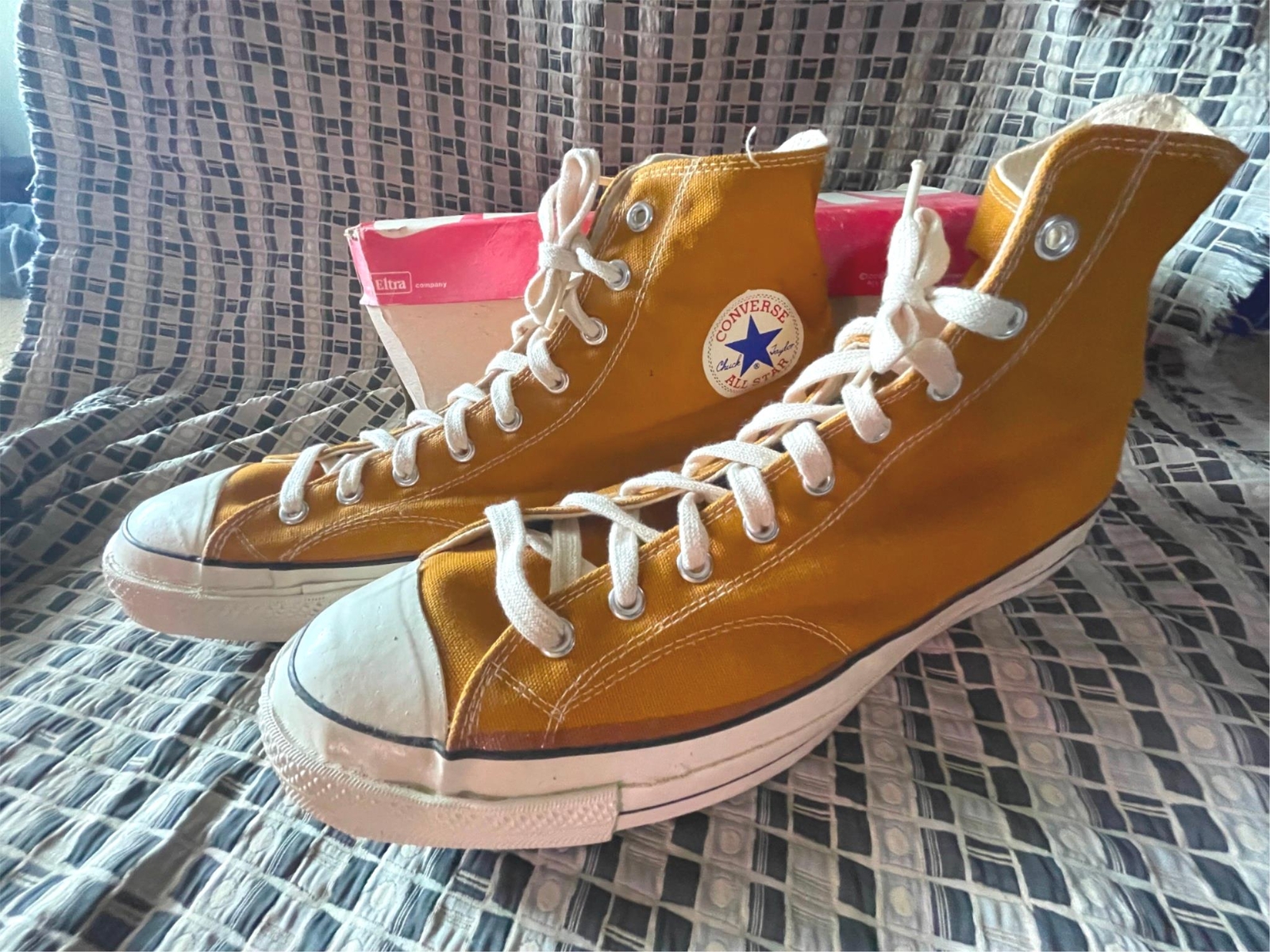как выглядит VTG 60S 70S NEW MENS 16 YELLOW GOLD USA CHUCK TAYLOR CONVERSE SNEAKER SHOES BOX фото