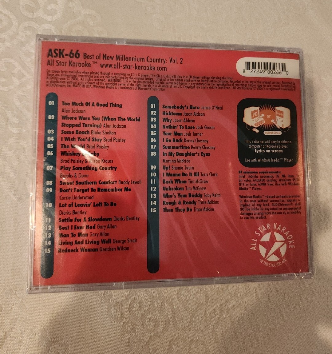 Karaoke Best Of The New Millennium Country 30 songs 2 disc set New Sealed