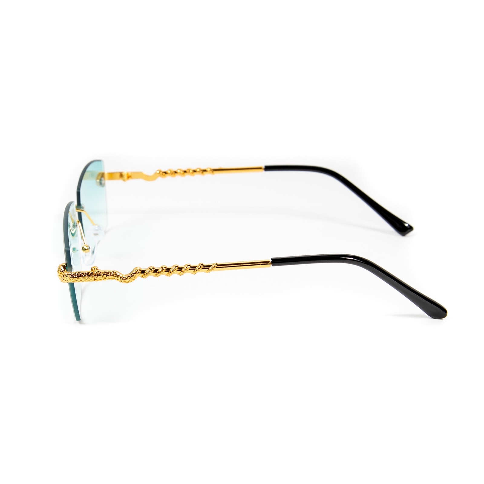 как выглядит Mens Turquoise Gradient Tint Rimless Gold Frame Hip Hop Sunglasses фото