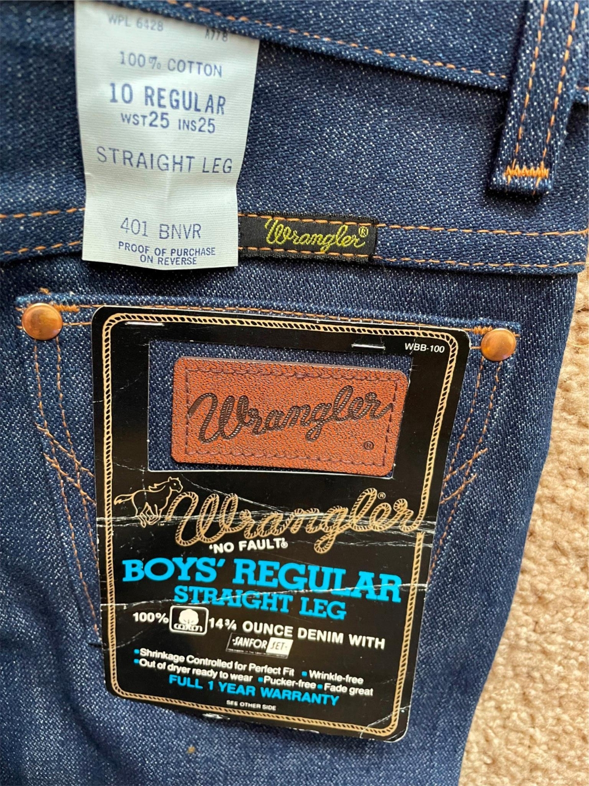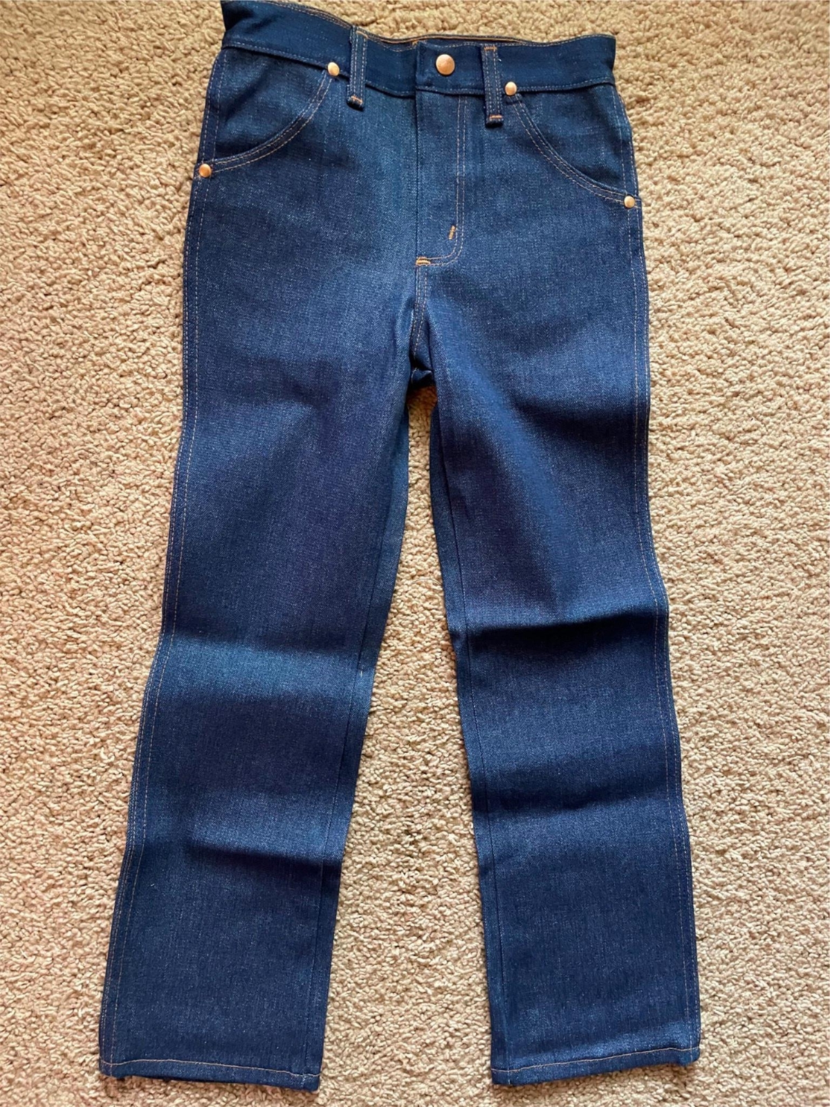 как выглядит VTG 70s NEW BOYS 10 KIDS 25 X 25 DARK DENIM WRANGLER STRAIGHT LEG JEANS PANTS фото