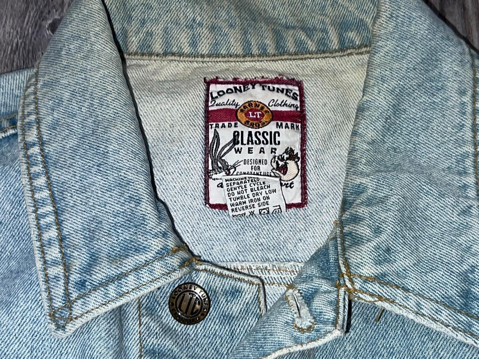 Vintage 90s Looney Tunes Bugs Bunny Tweety Embroidered Denim Jacket Acme Size M