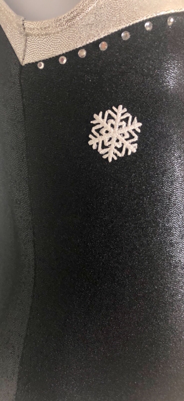 как выглядит GK BLACK MYSTIQUE GIRLS X-SMALL SLVLS SNOWFLAKES JA GYMNASTICS DANCE LEOTARD CXS фото