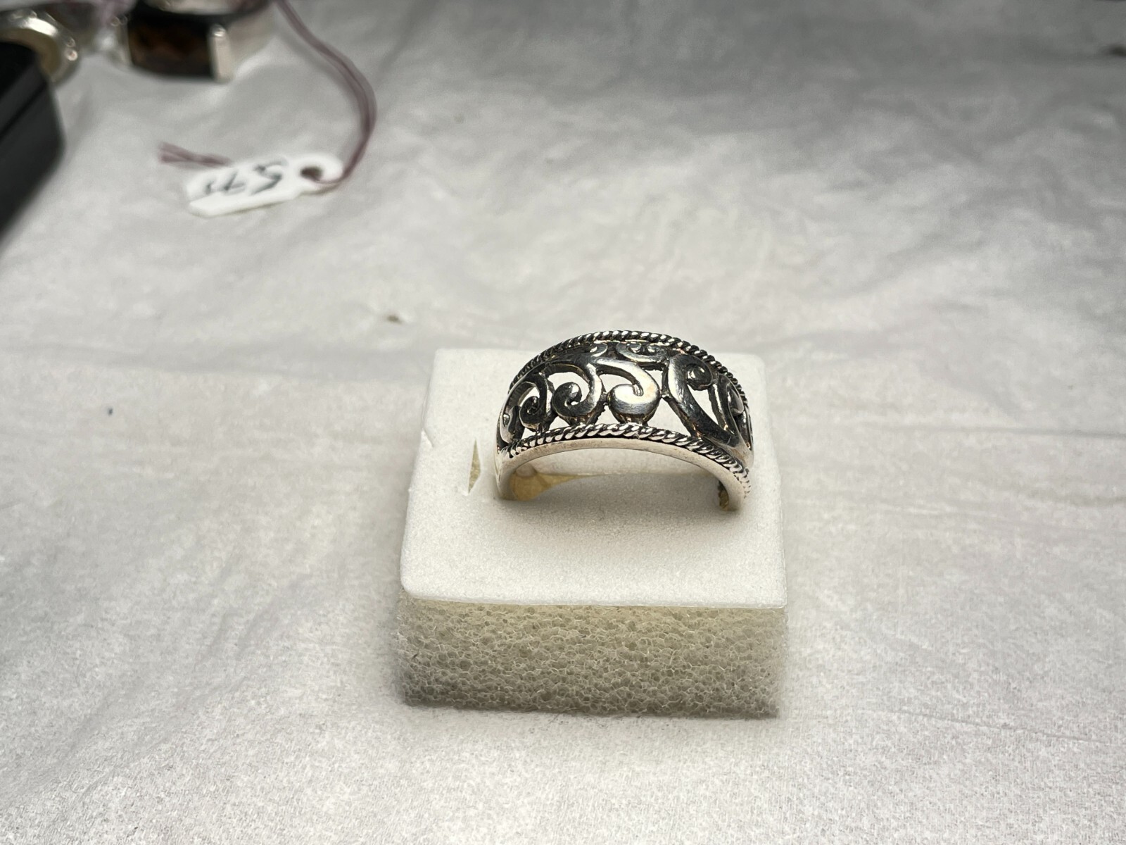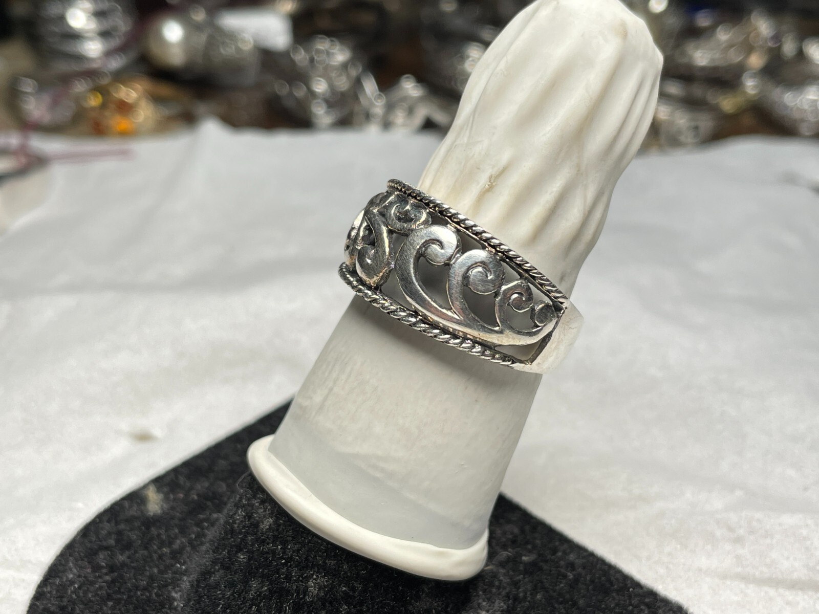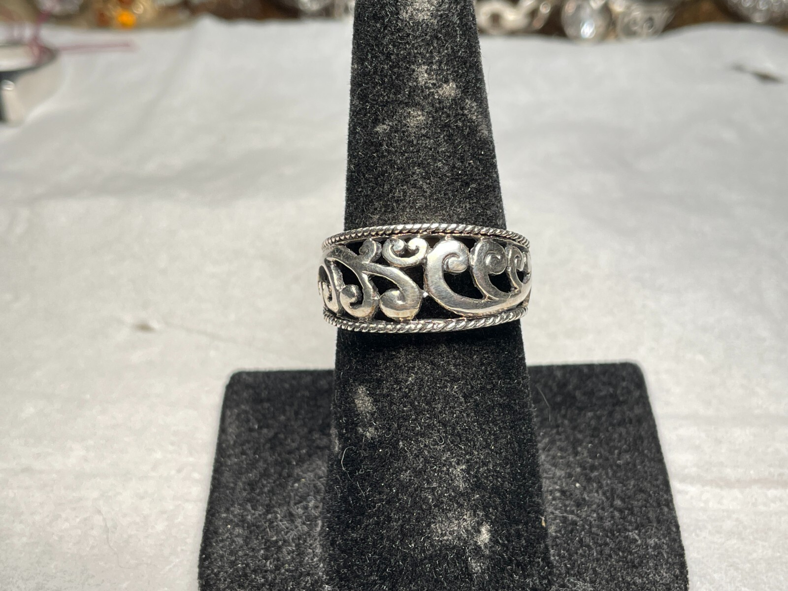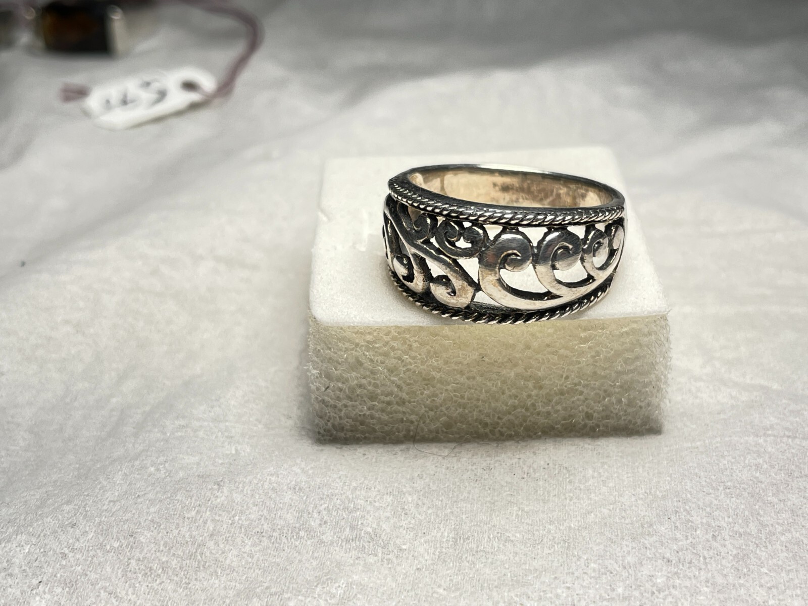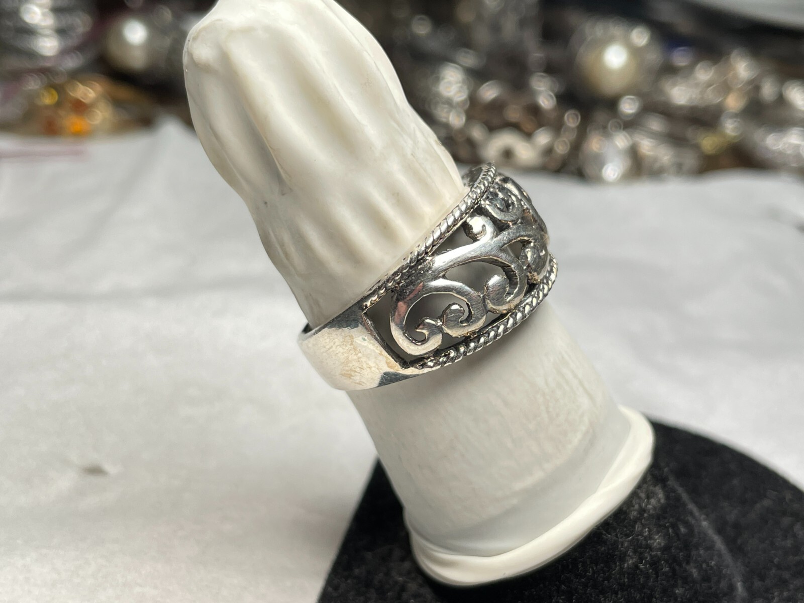 как выглядит Vintage Sterling Silver 925 Wave Style Ring with Bead Accents Size 9 6.1 Grams. фото