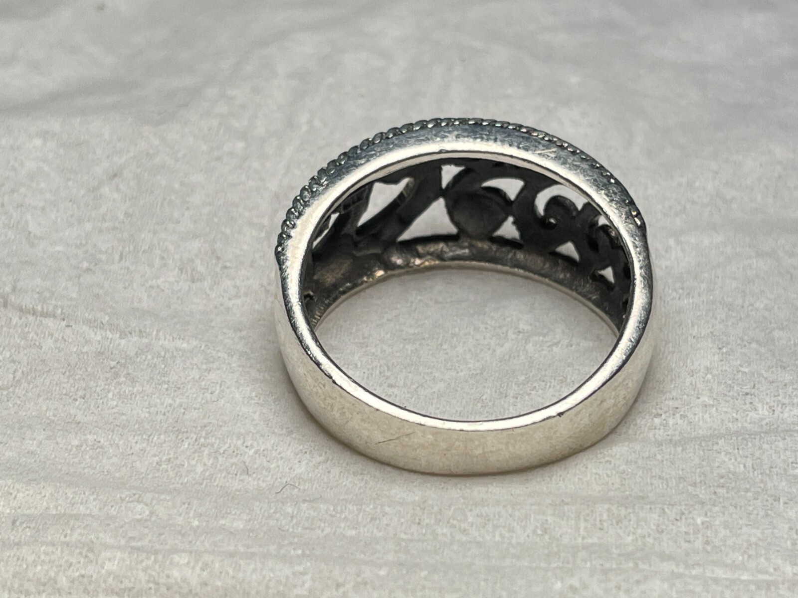 Vintage Sterling Silver 925 Wave Style Ring with Bead Accents Size 9 6.1 Grams.