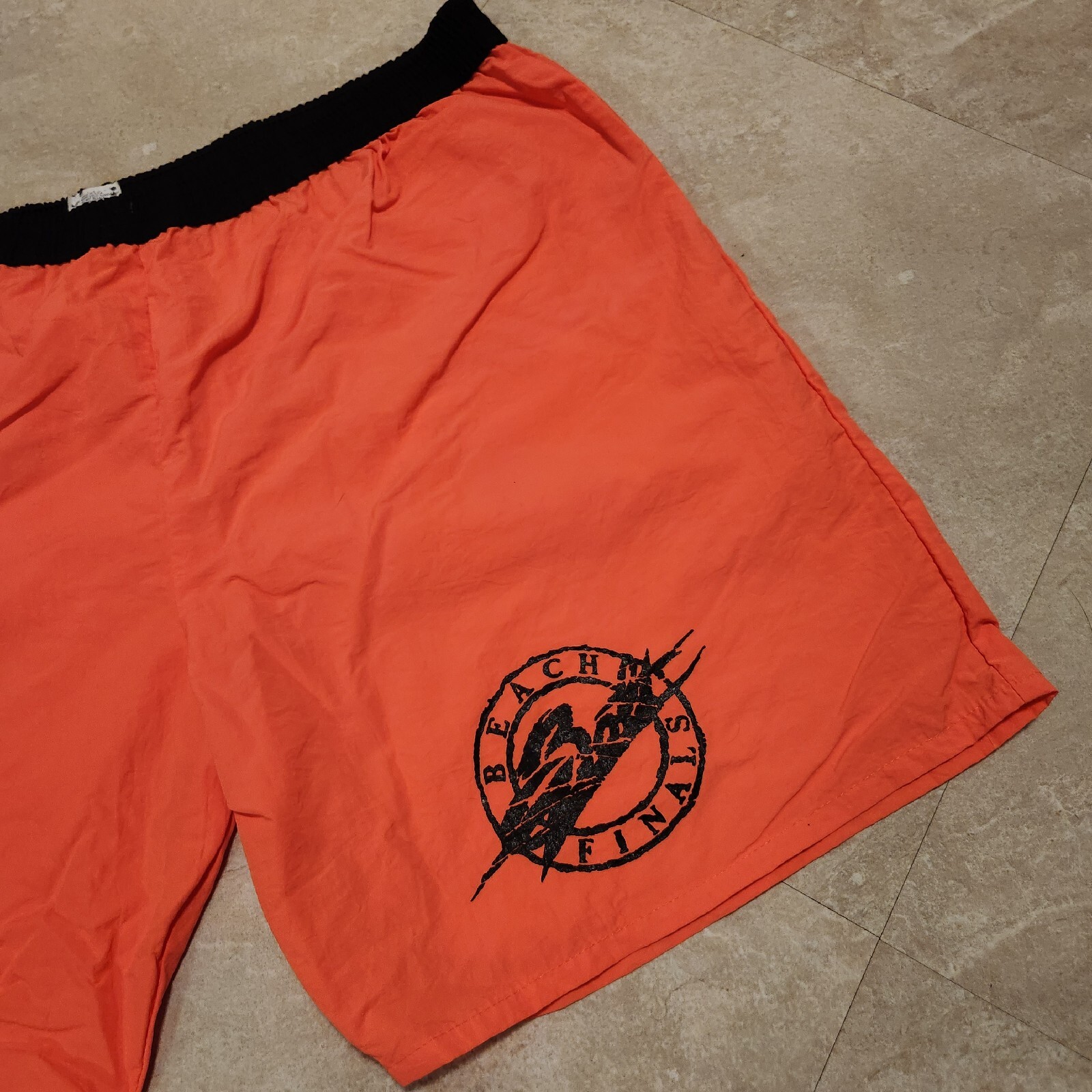 как выглядит VTG Lightning Bolt Men XL USA Made Retro Orange Elastic Swim Trunks Board Shorts фото