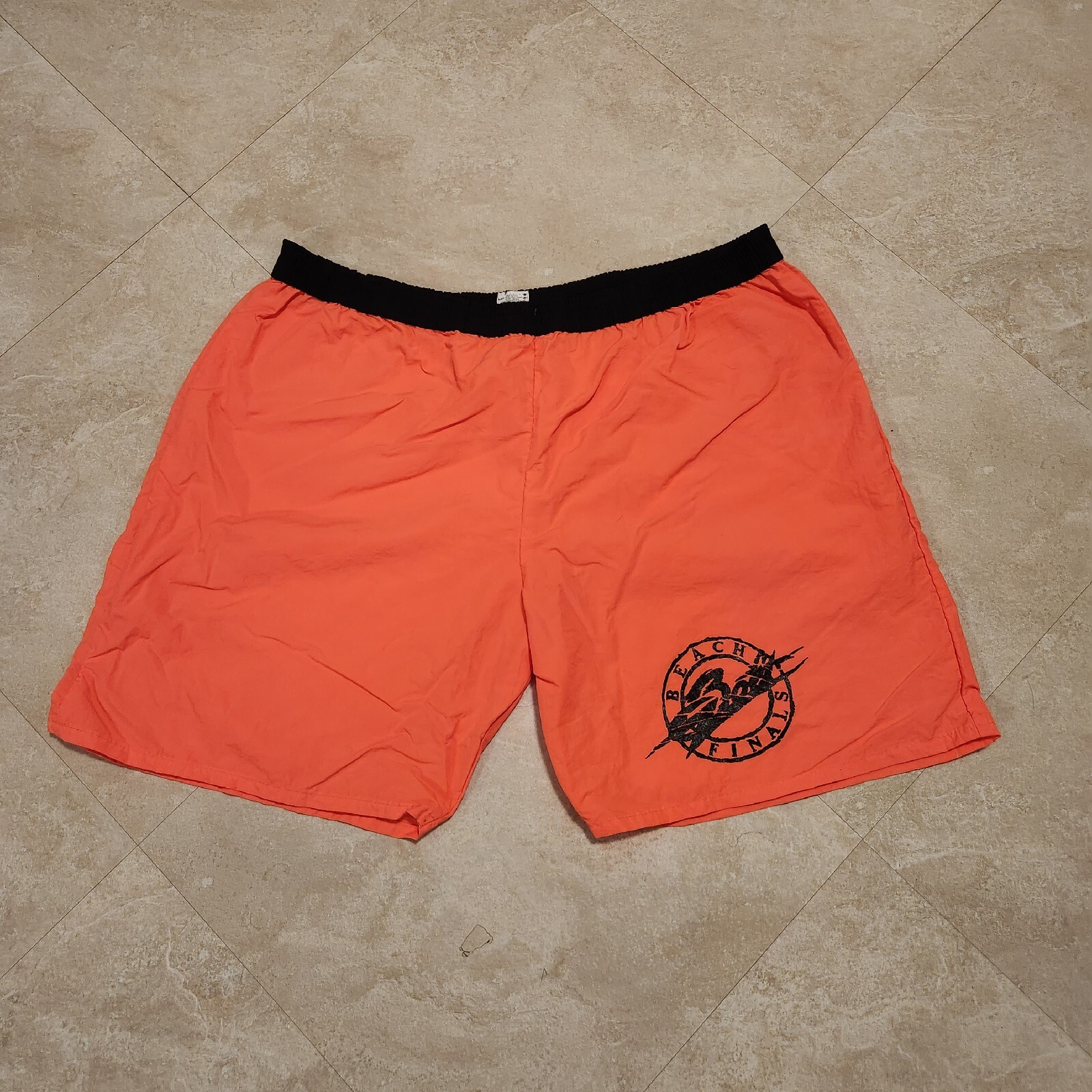 VTG Lightning Bolt Men XL USA Made Retro Orange Elastic Swim Trunks Board Shorts