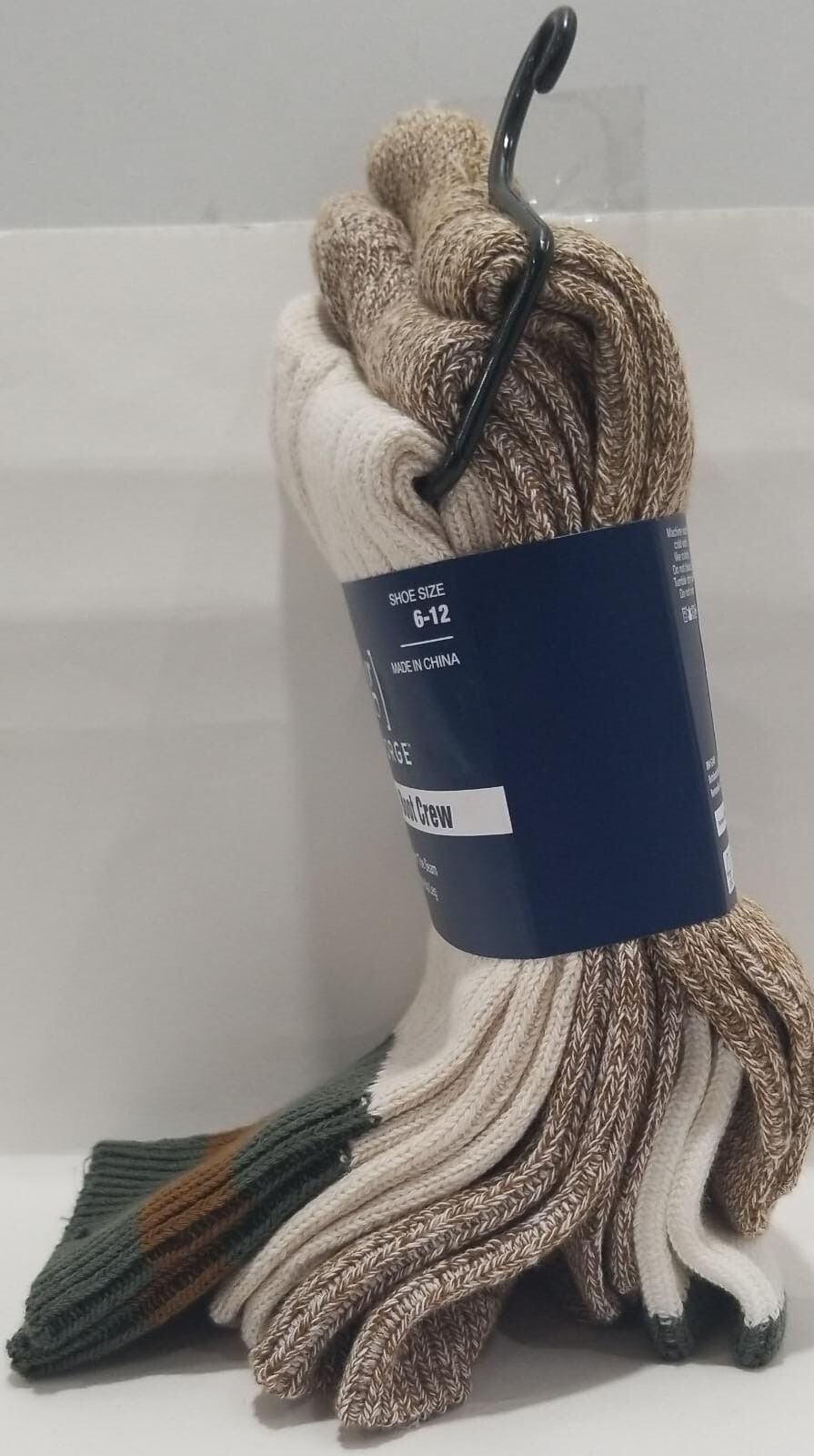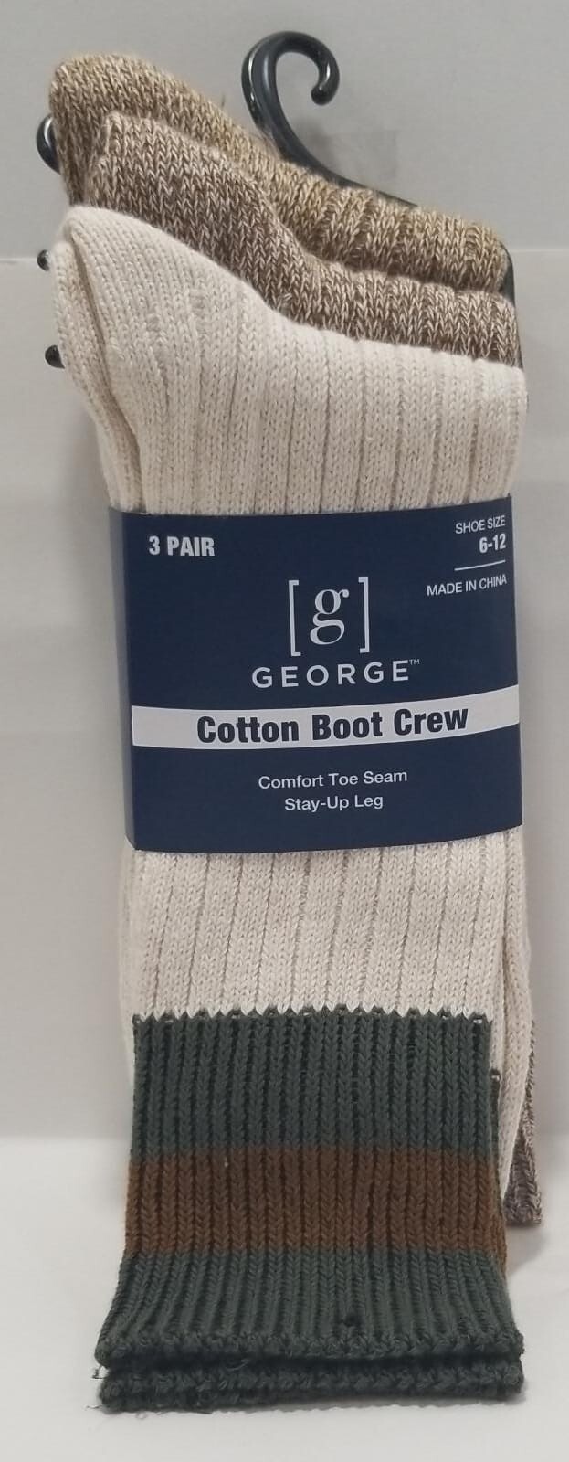 3Pairs George Men's Cotton Rib Boot Crew Socks, Biege Size 6-12